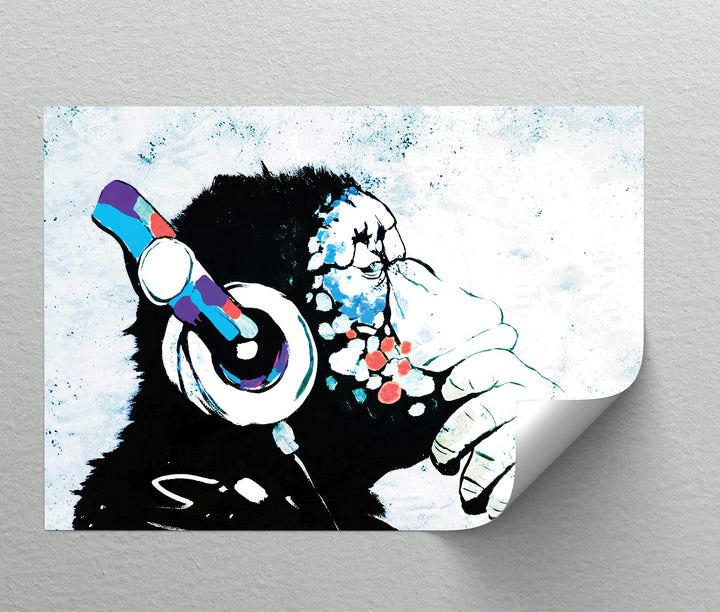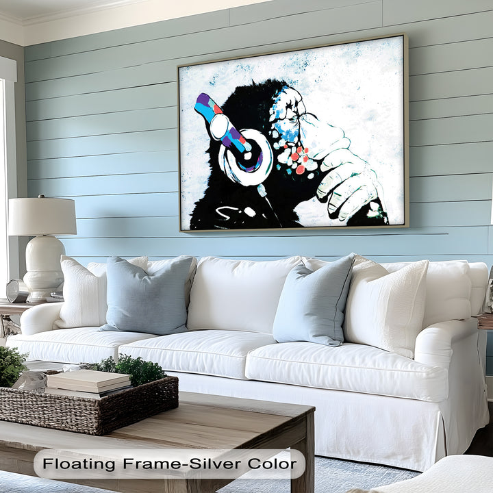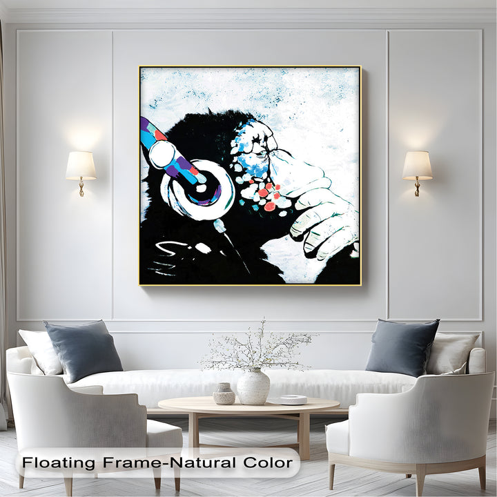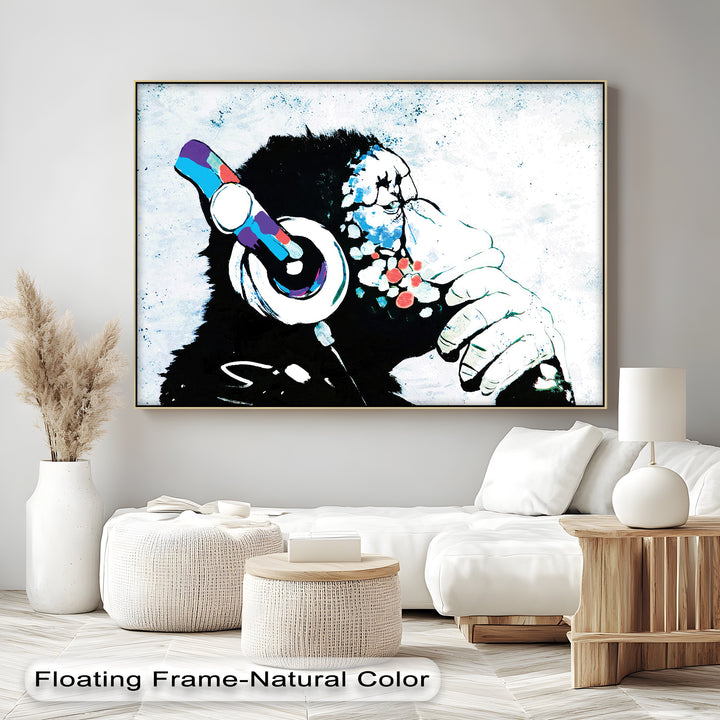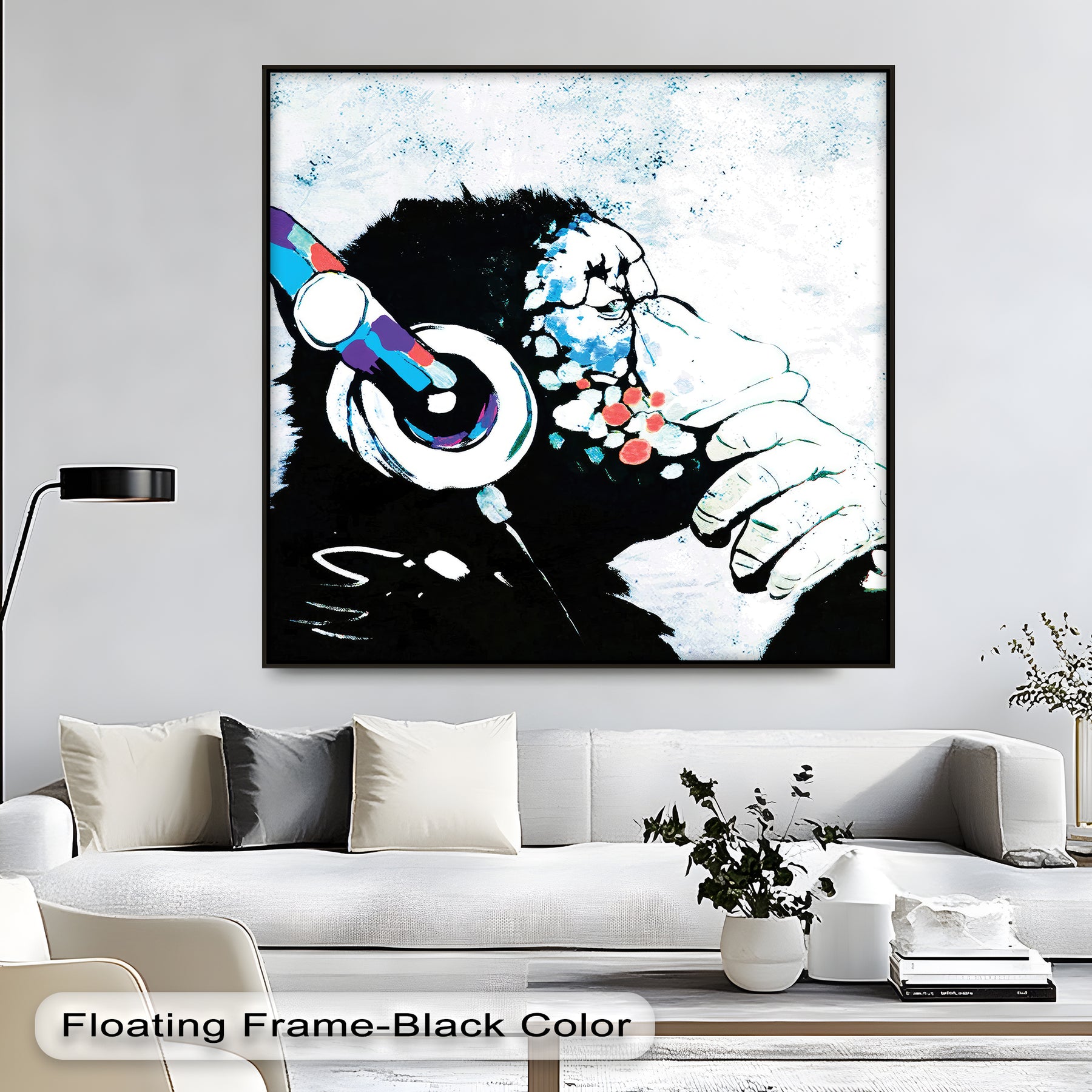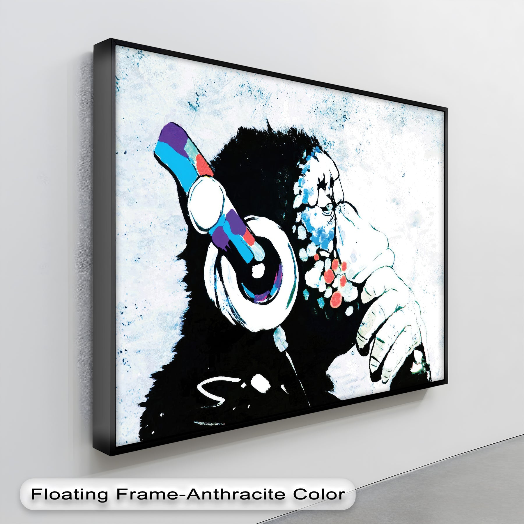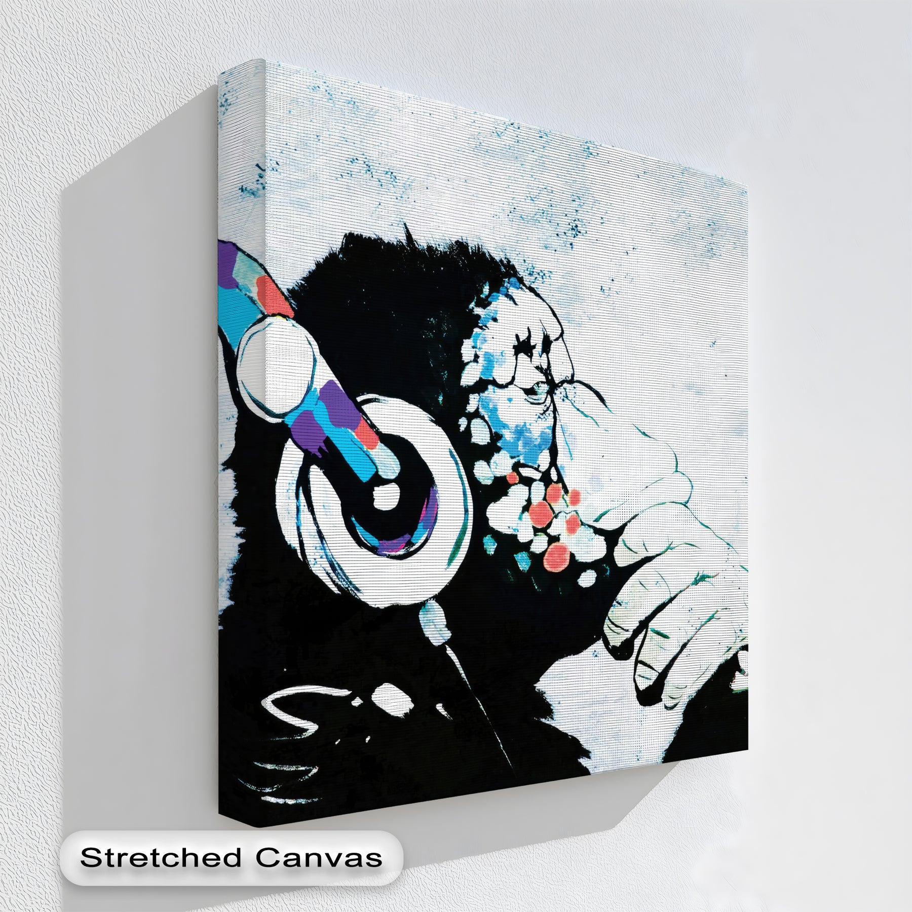 Cool, reflective, and irresistibly modern—Listening Ape – Banksy Street Art Canvas Print captures the intersection of evolution and expression. A thoughtful chimpanzee, adorned with bold headphones splashed in vivid colors, symbolizes humanity’s deep connection with music and technology. The mix of minimal composition and electric tones brings a fresh, contemporary vibe to Banksy’s rebellious humor. Ideal for music lovers, creatives, and anyone drawn to art that speaks through silence and sound alike.