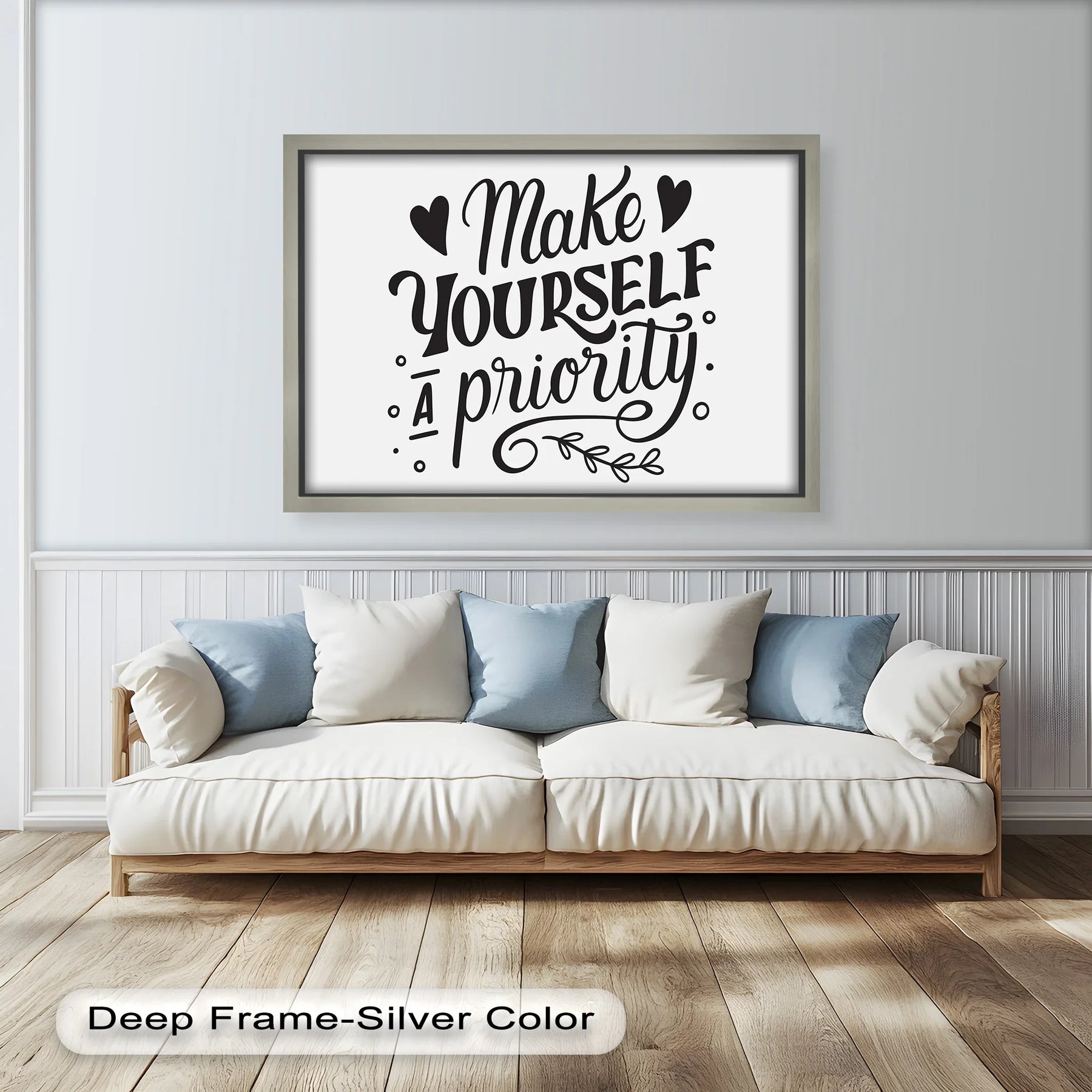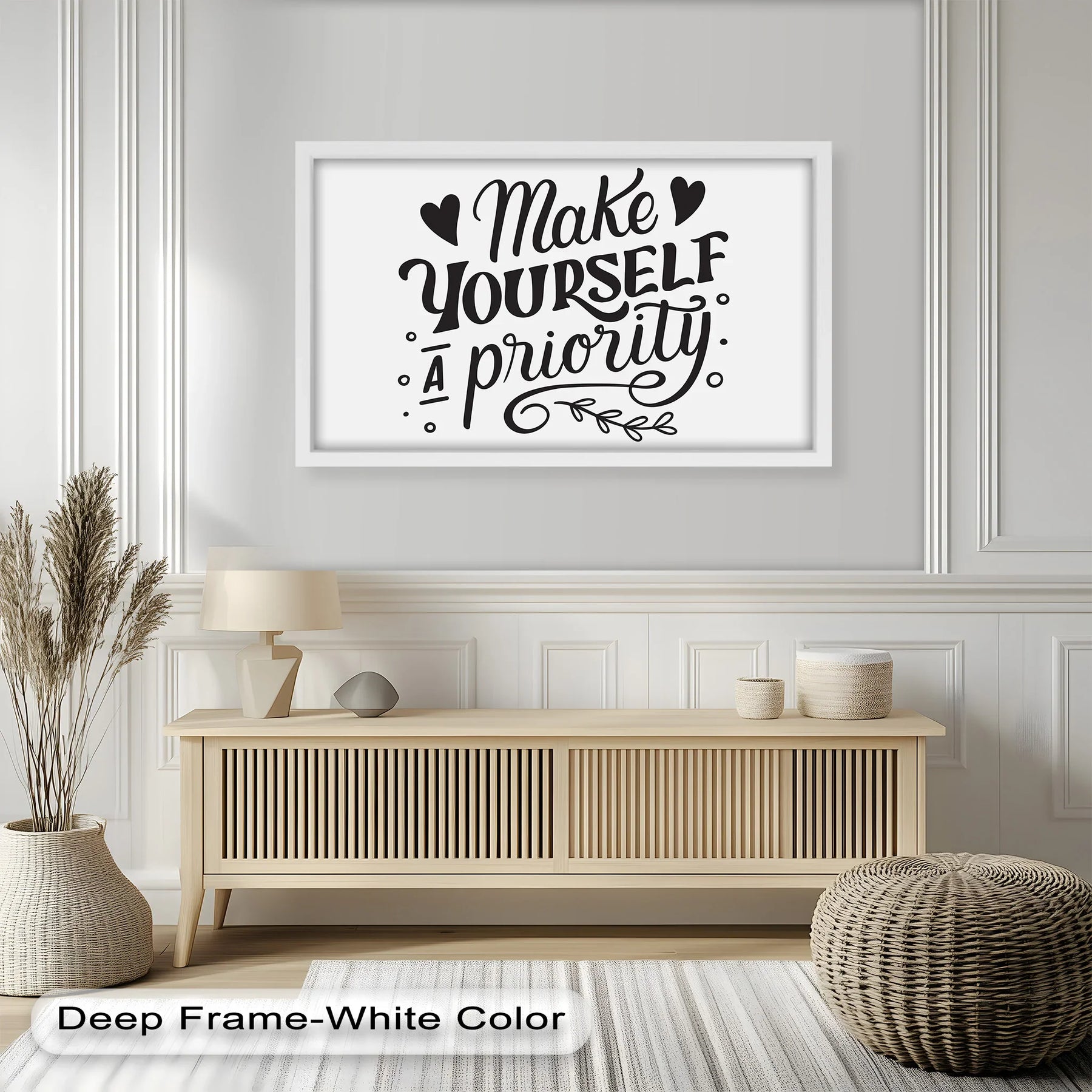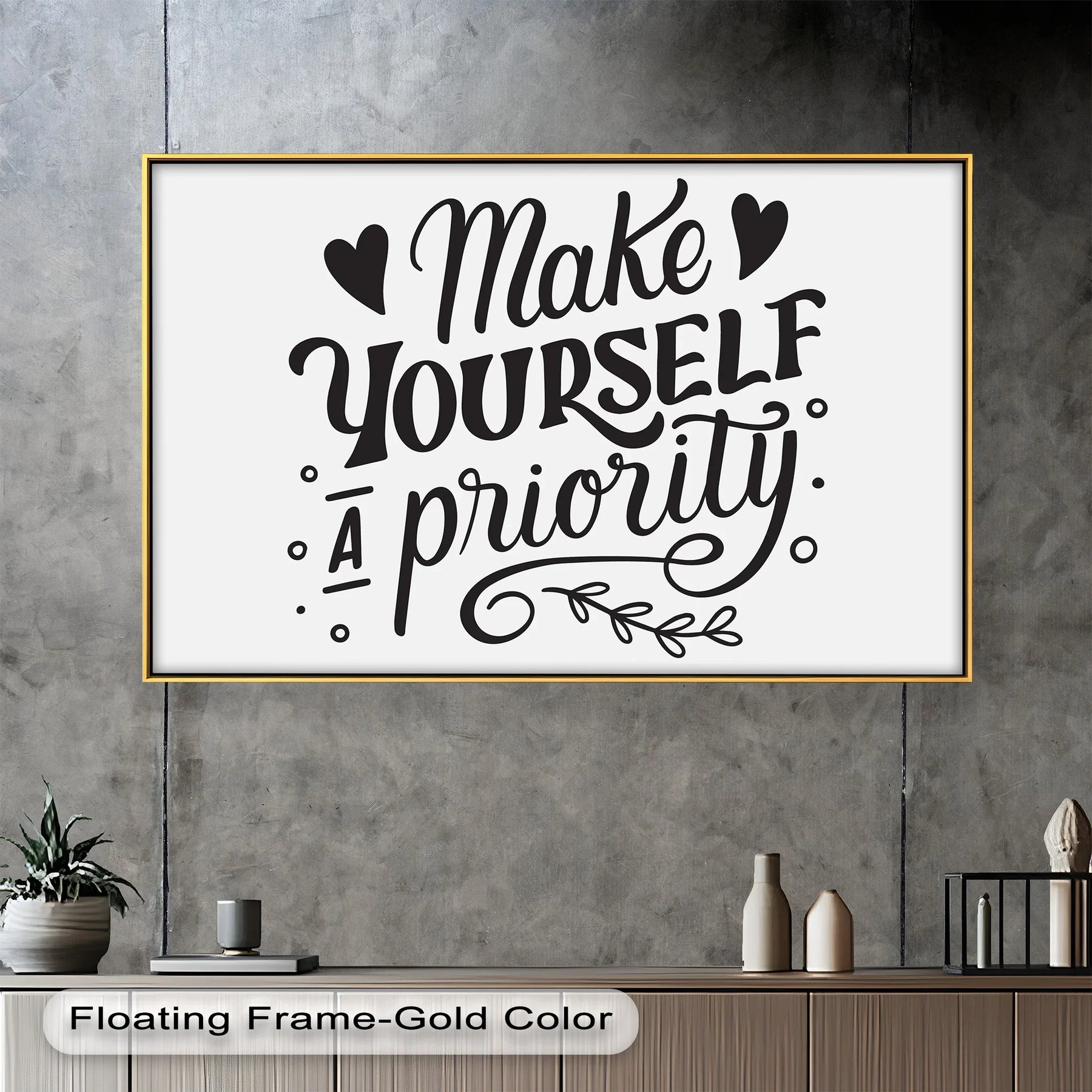 Empowering Self-Care Oil Painting – “Make Yourself a Priority” Motivational Wall Art