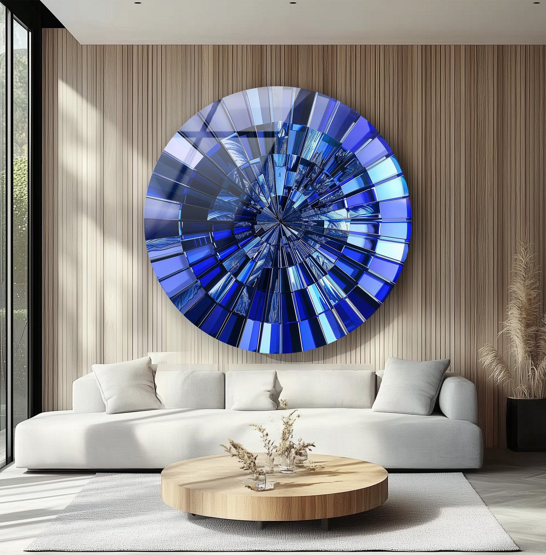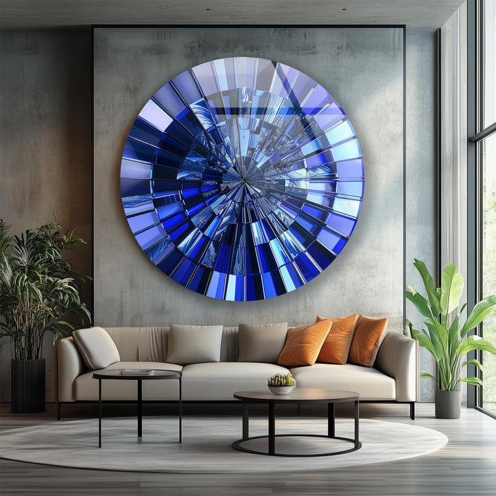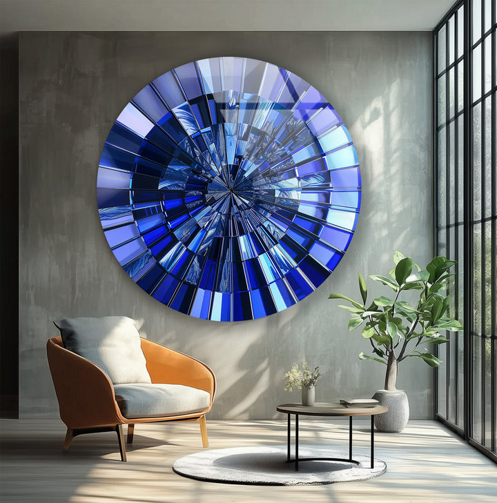 Perfect for modern, minimalist, or luxury interiors, this round glass wall art becomes an instant statement of sophistication. Its deep blue hues symbolize calm, intelligence, and introspection, making it ideal for both serene living rooms and stylish office spaces. The high-gloss finish ensures a mirror-like brilliance that transforms with every angle of illumination.