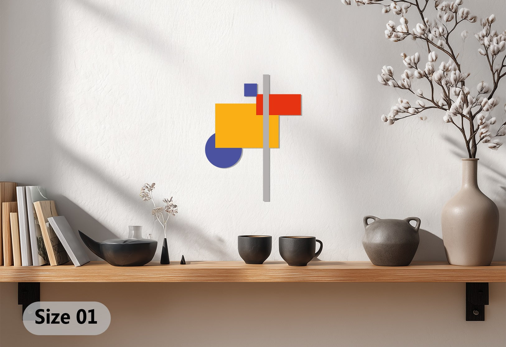 Transform your walls into a gallery of bold simplicity with the Modern Geometric Abstract Metal Wall Art, a striking composition of color, form, and balance. Featuring vivid blocks of yellow, red, blue, and silver, this piece captures the spirit of Bauhaus-inspired minimalism — perfect for living rooms, offices, or modern interiors that value structure and creativity.