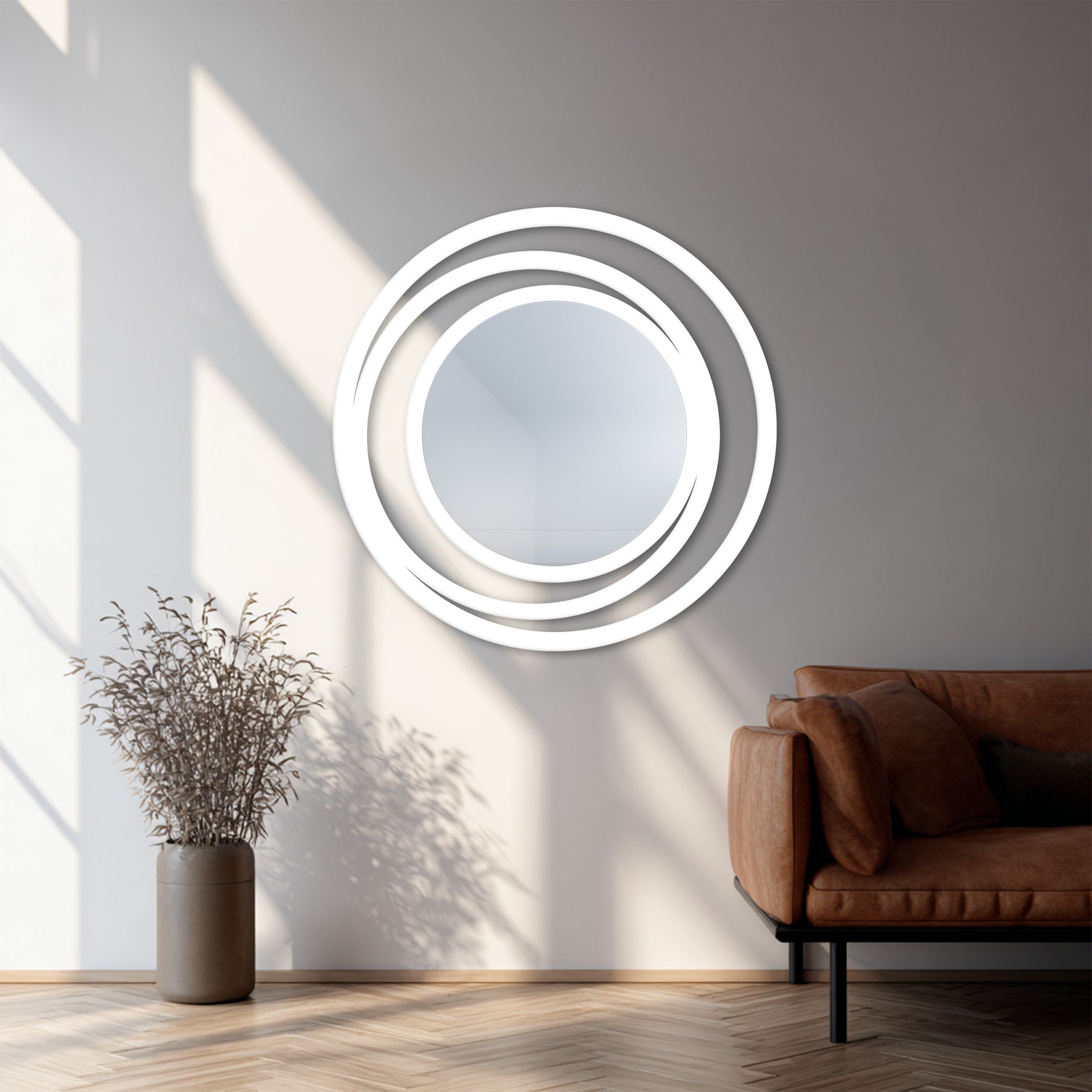 Elevate your interior with this Modern Round Mirror featuring a triple circle metal frame. A striking blend of simplicity and bold geometry, this mirror transforms your wall into a statement of modern elegance. The overlapping circle design creates depth and dimension, making it the perfect centerpiece for living rooms, entryways, bedrooms, or offices.