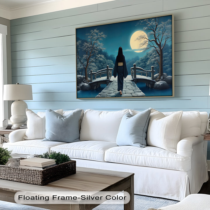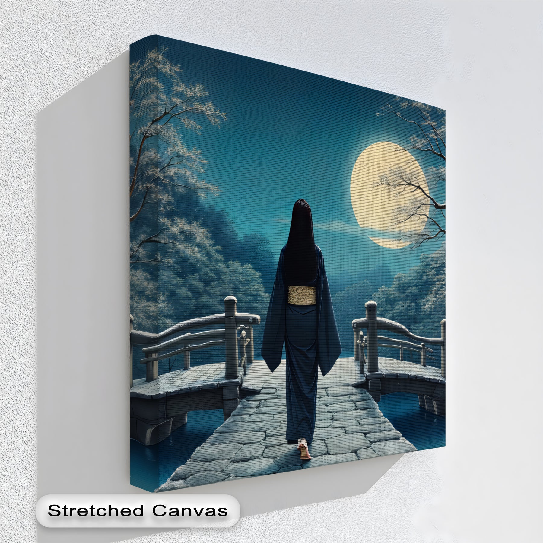 Moonlit Elegance – Japanese Geisha on Bridge Canvas Wall Art | Canvas Art