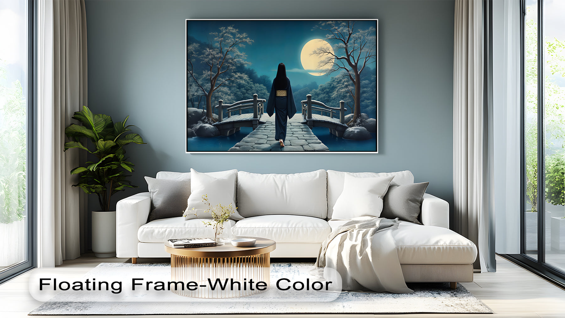 Our framed canvas wall art features a 3.5 cm (1.38 inch) thick floating frame, creating a striking depth effect that elevates your artwork with a luxurious, gallery-quality appearance. Available in multiple color options, the frame adds bold definition and a modern touch to any space.