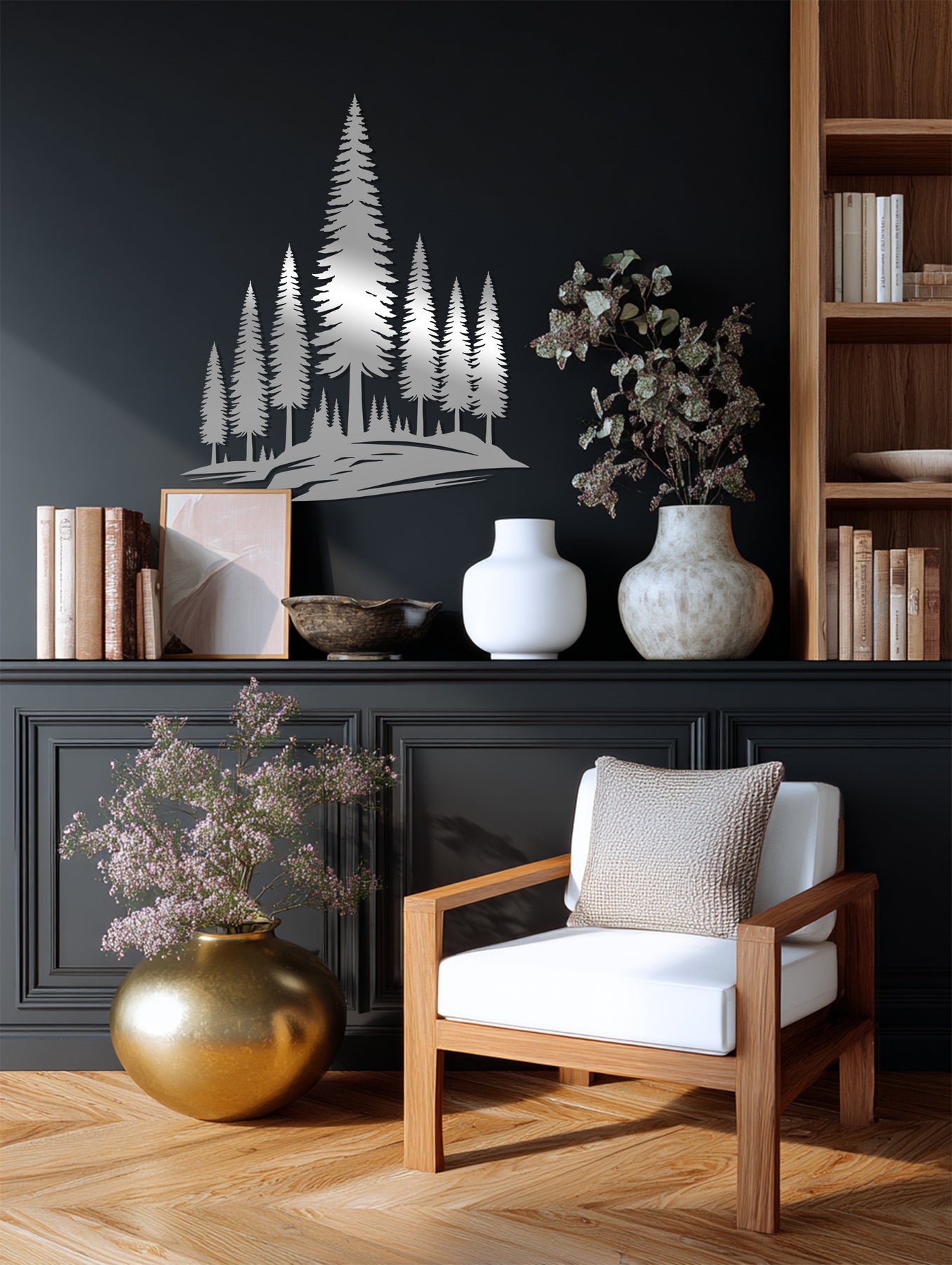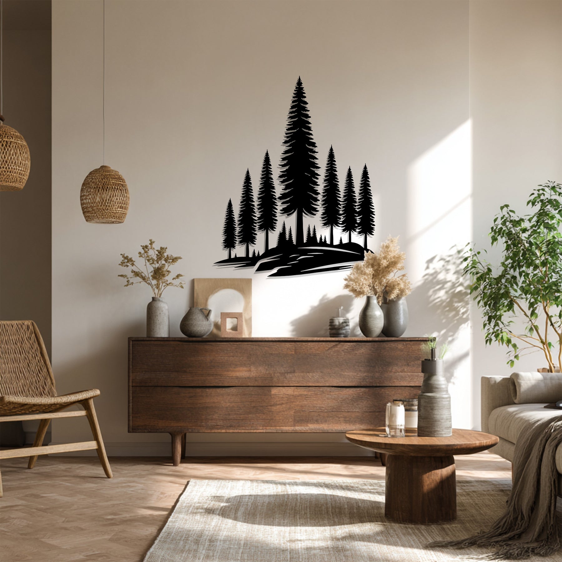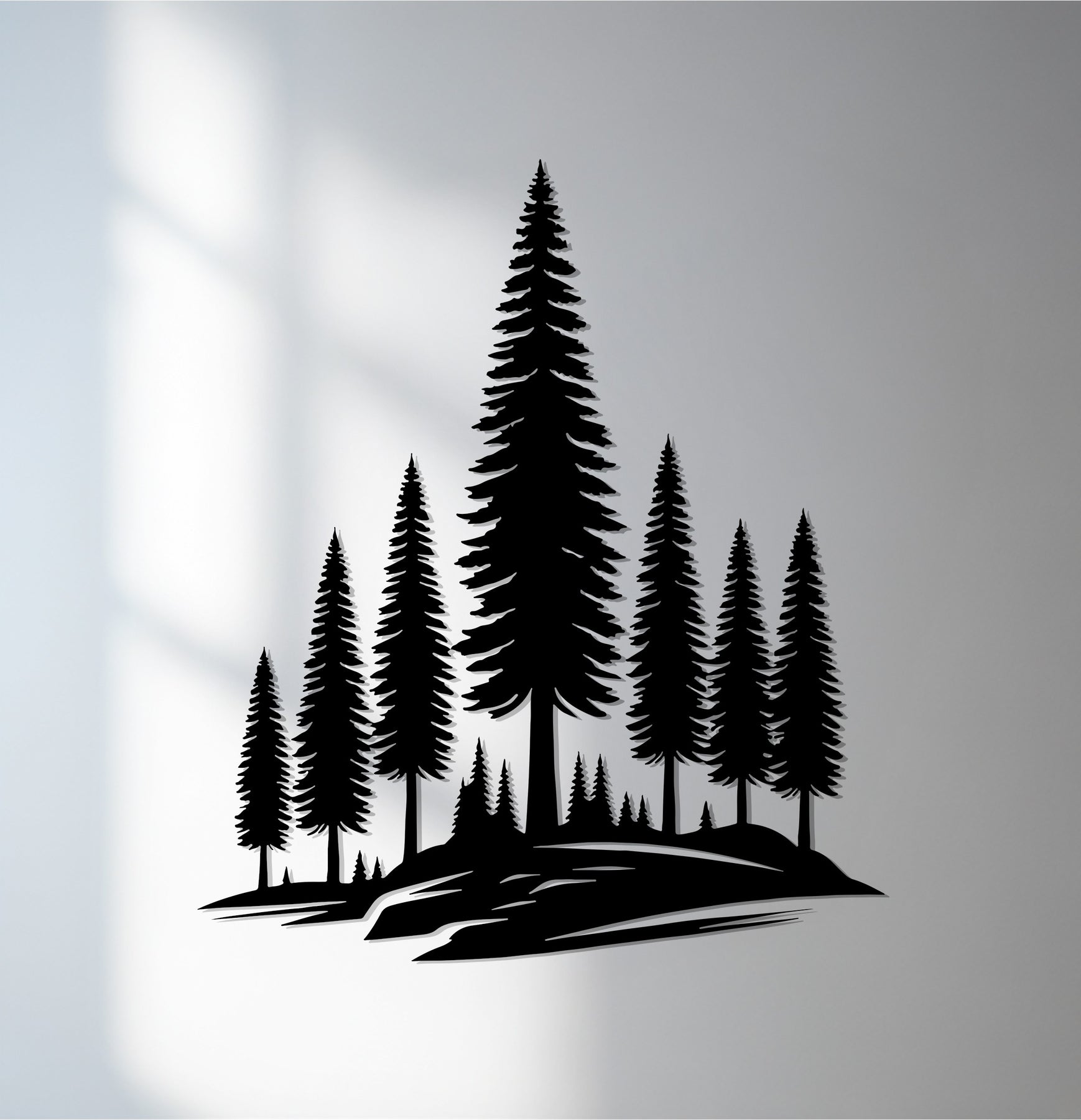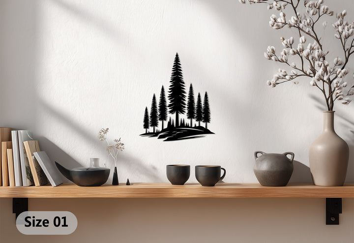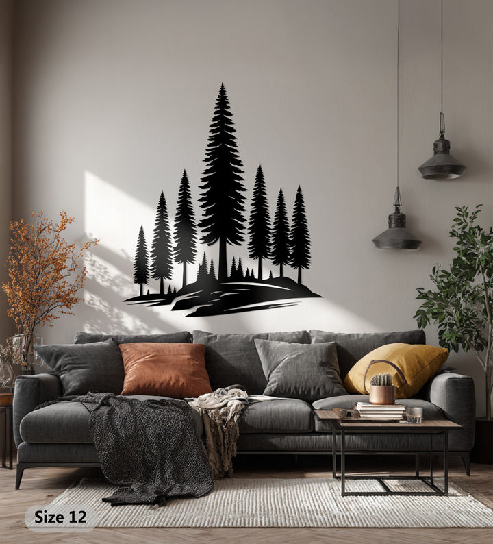 Crafted with precision from premium laser-cut metal, each pine tree is rendered in exquisite detail to reflect the harmony of nature. Its bold black finish contrasts beautifully against light walls, making it a stunning statement piece for living rooms, bedrooms, cabins, or offices.