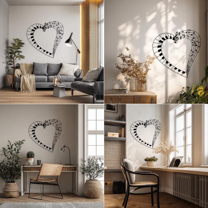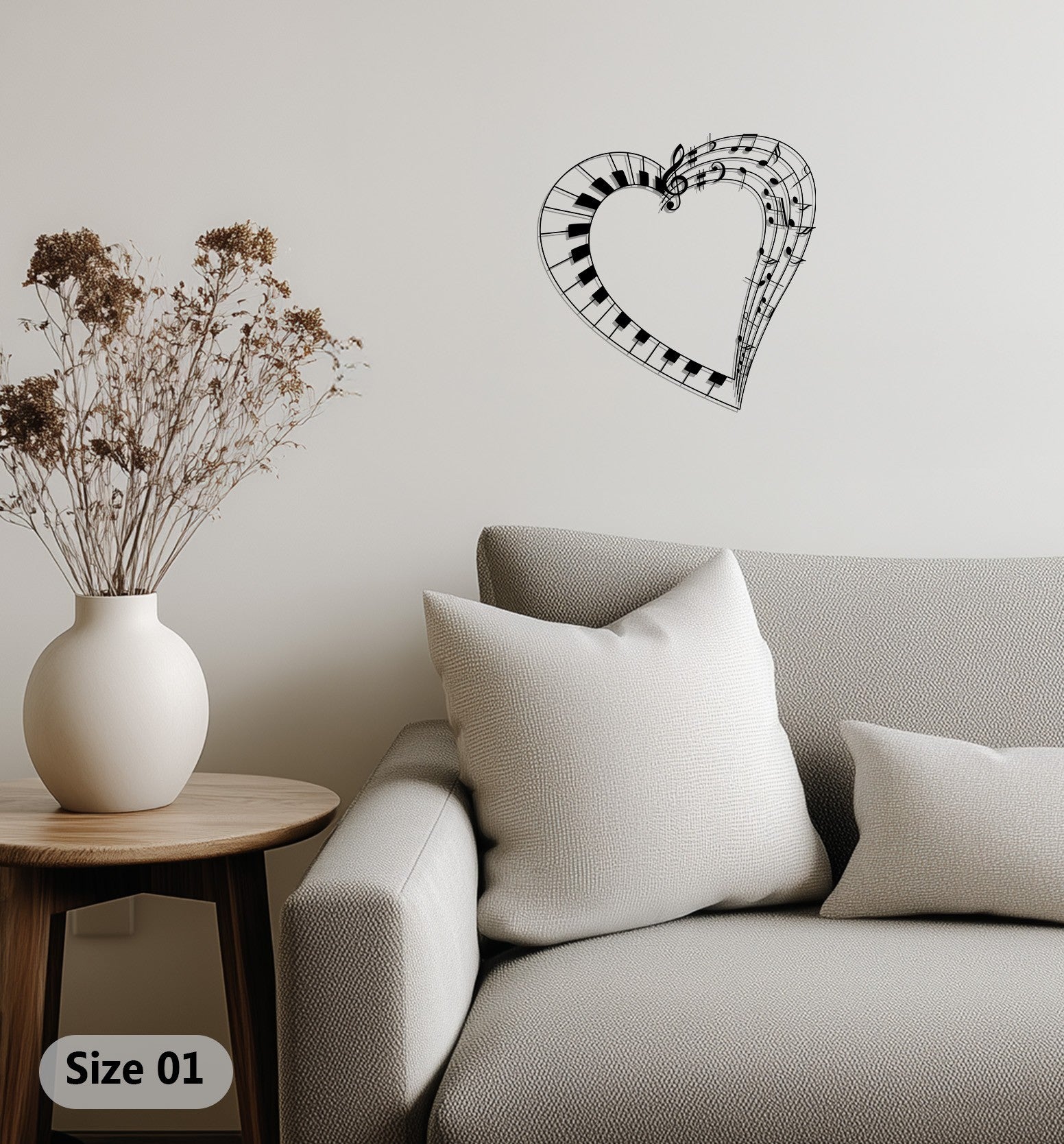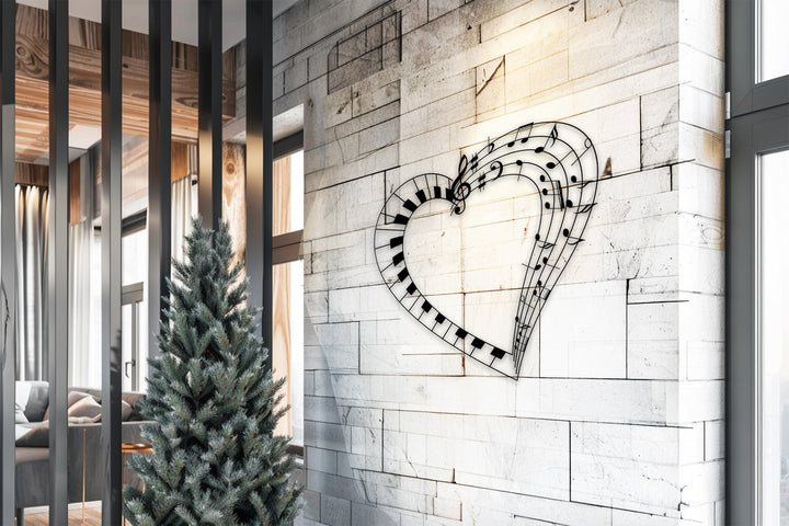 Bring harmony, rhythm, and love into your home with this Musical Heart Metal Wall Art. Designed with flowing piano keys and graceful musical notes forming the shape of a heart, this piece is the perfect fusion of passion for music and romance.