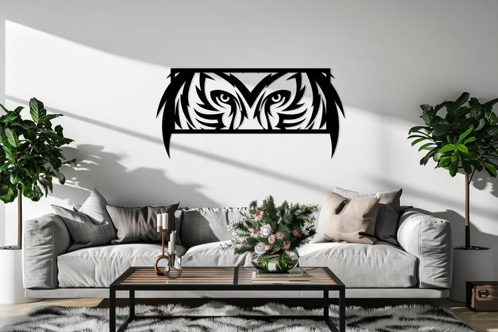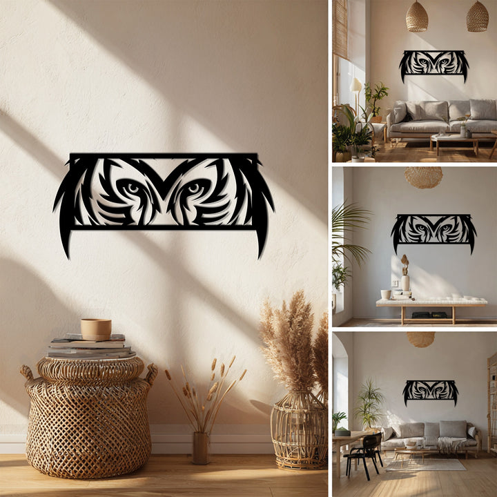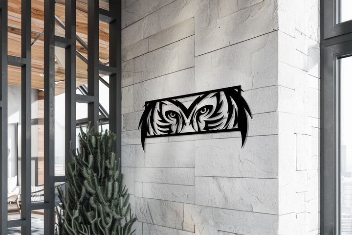 Mystic Owl Eyes Metal Wall Art – Modern Wildlife Decor