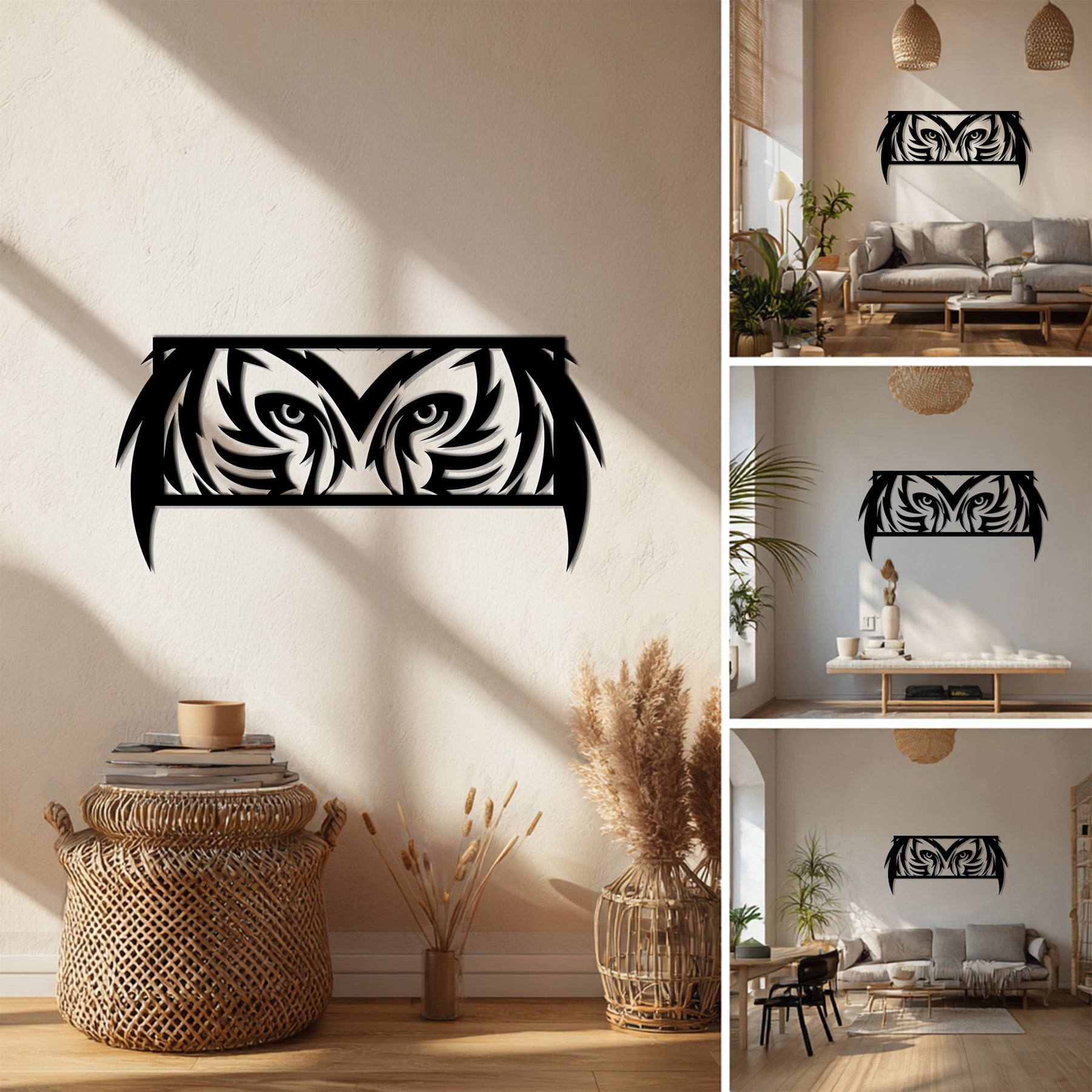 Expertly laser-cut from durable metal and finished in deep matte black, this piece blends modern minimalism with natural symbolism. Whether in your living room, office, or rustic cabin, it adds a bold statement and spiritual balance to any space.