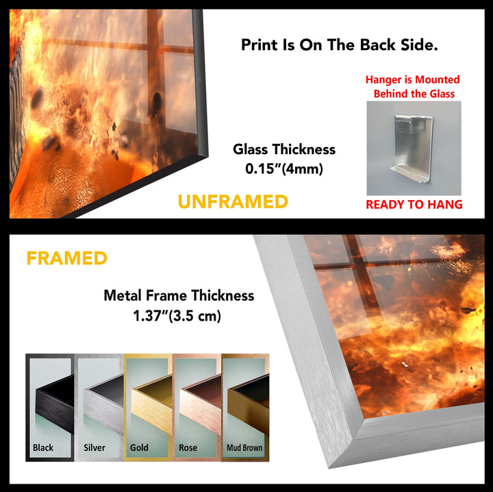 Printed with 8K UV technology on 4mm tempered glass, this Glass Wall Art brings the explosive power of Blazing Spirit chakra to life in vibrant, sharp detail. It’s perfect for adding an electrifying touch to any room, from anime collectors' spaces to living rooms in need of bold decor.
