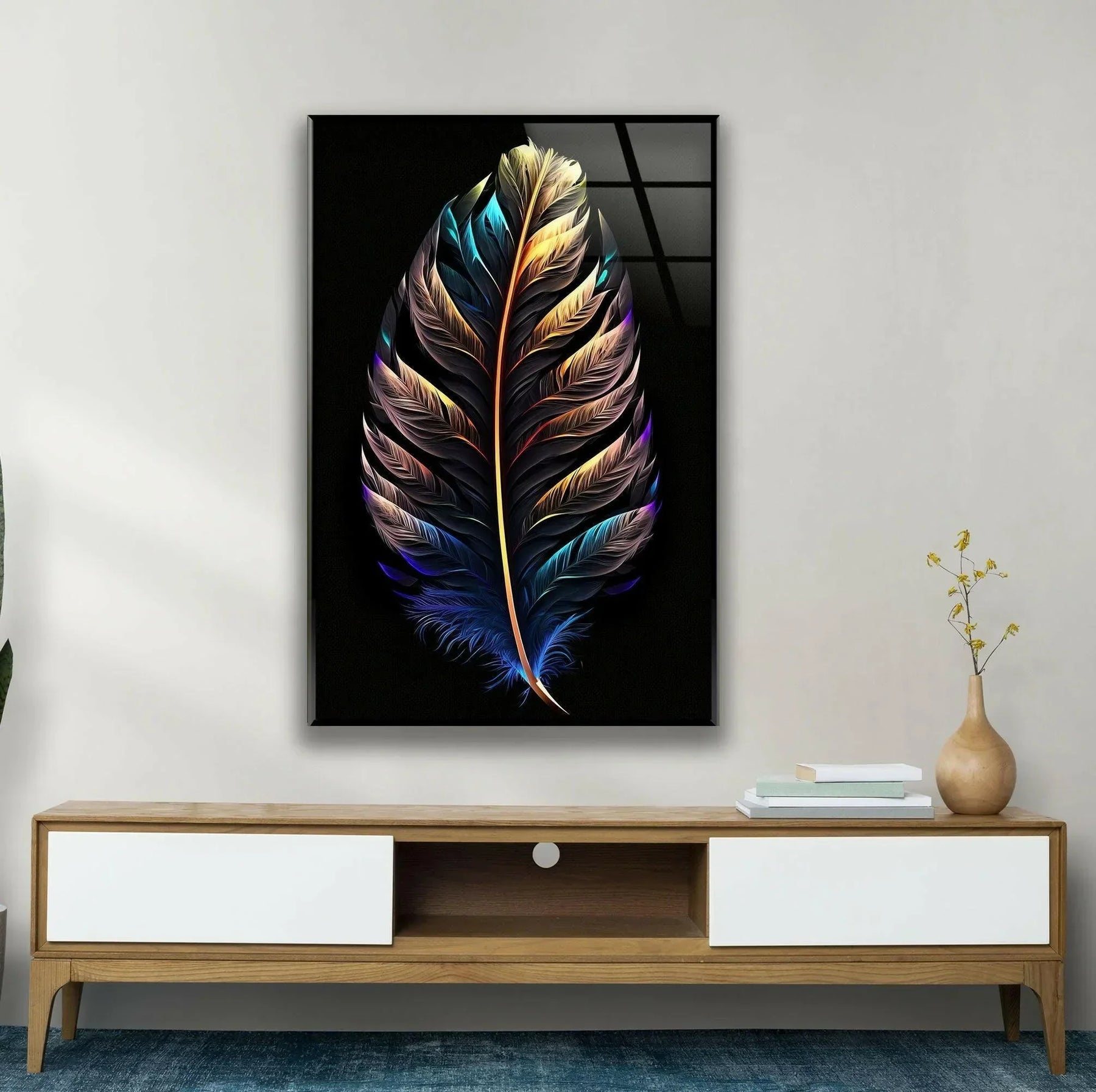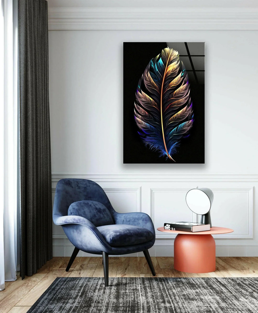 Elevate Your Space with the Neon Color Bird Feather Glass Wall Art