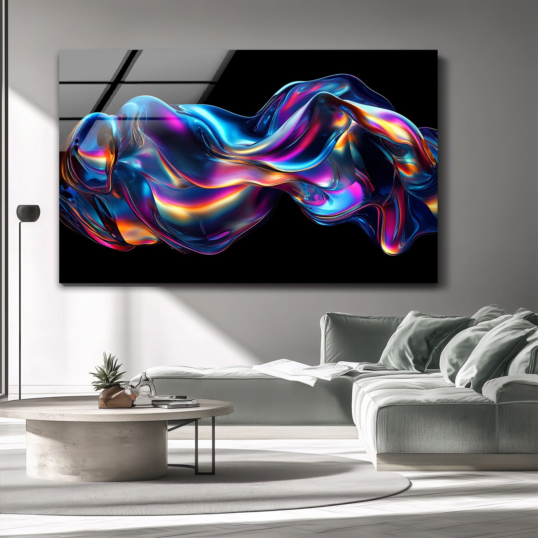 Printed on ultra-gloss premium glass, every glow, ripple, and gradient is captured with exceptional sharpness. Whether placed in a living room, media room, gaming setup, creative studio, or luxury commercial space, this artwork transforms any wall into a dynamic, gallery-grade display of color and motion.