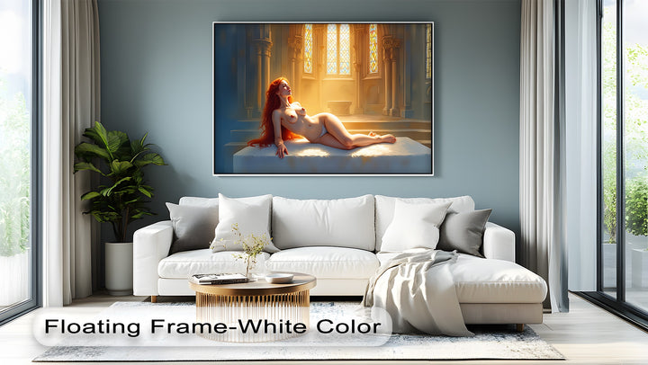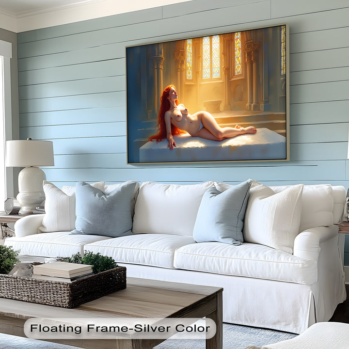 Nude Goddess in Sunlit Cathedral - Erotic Canvas Print | Framed Art