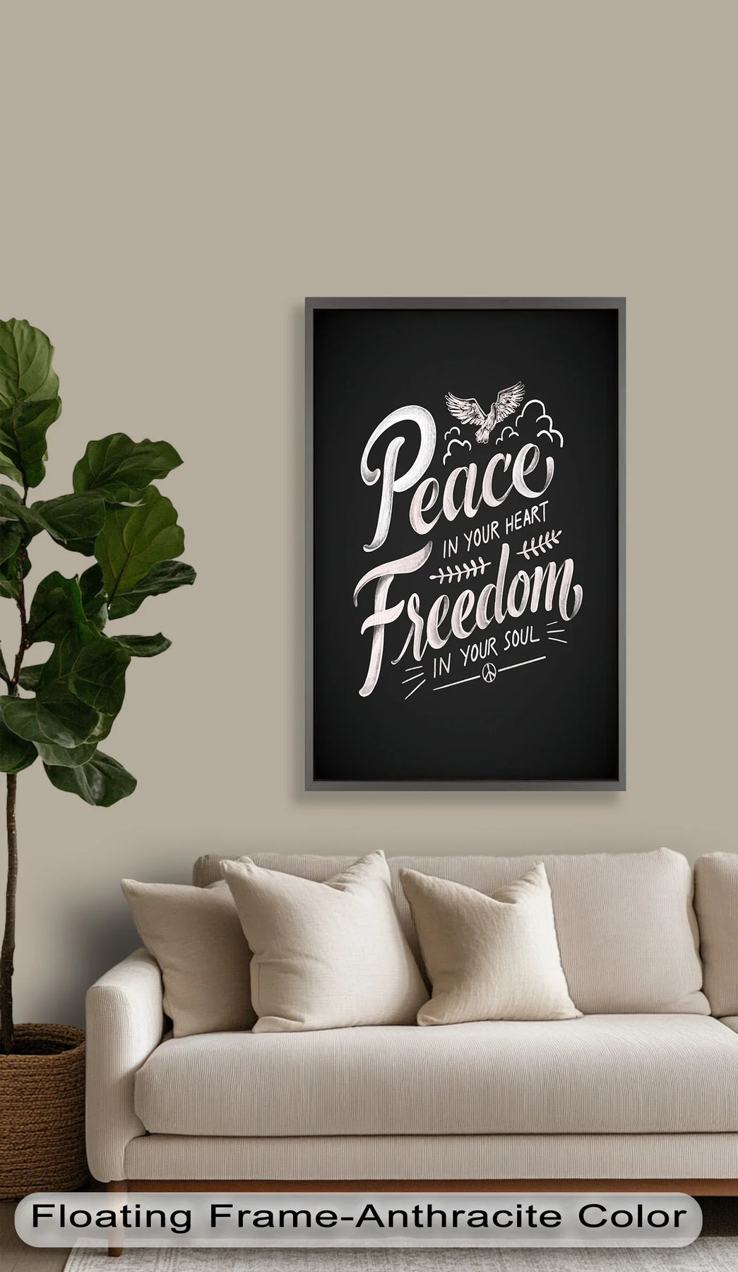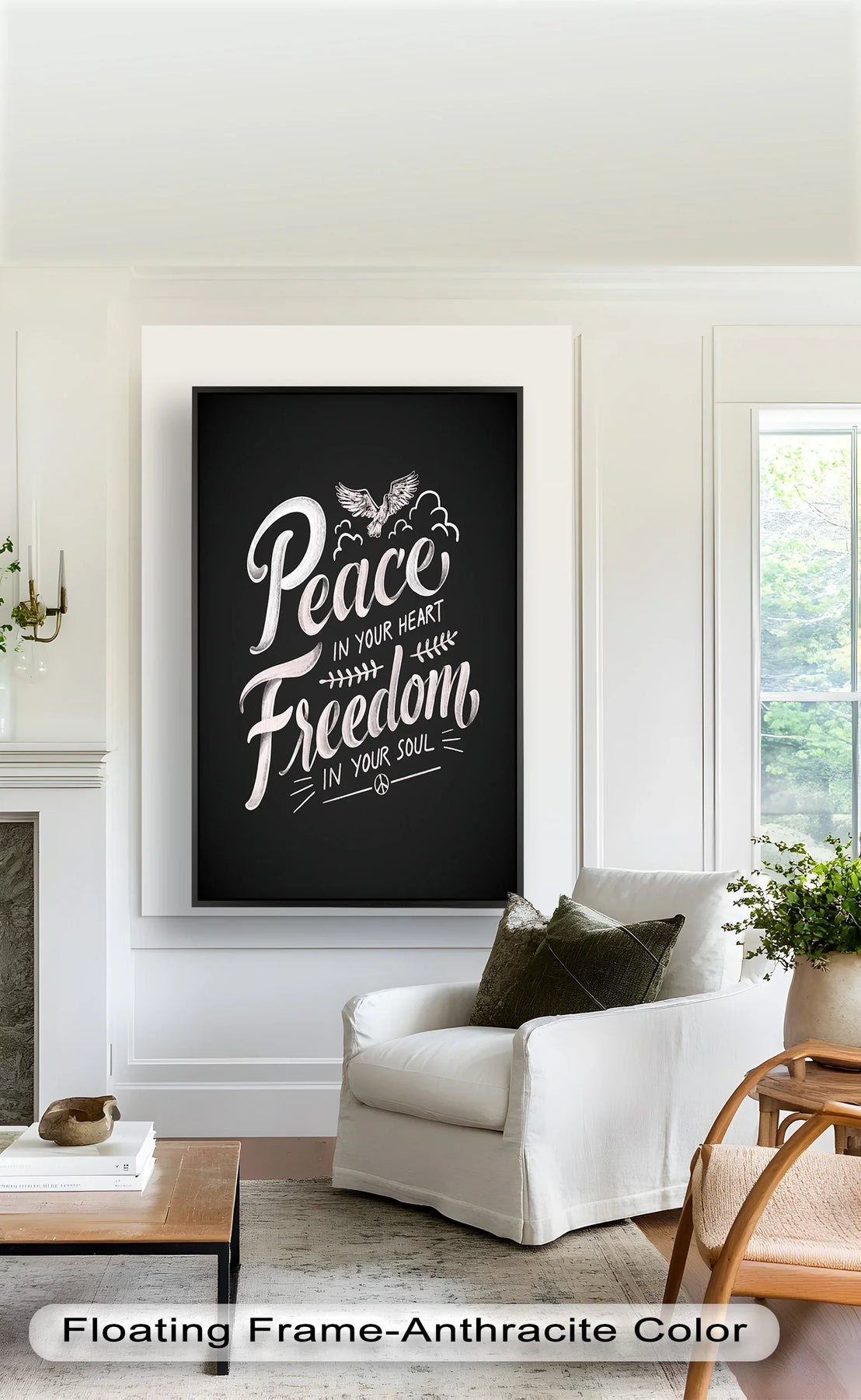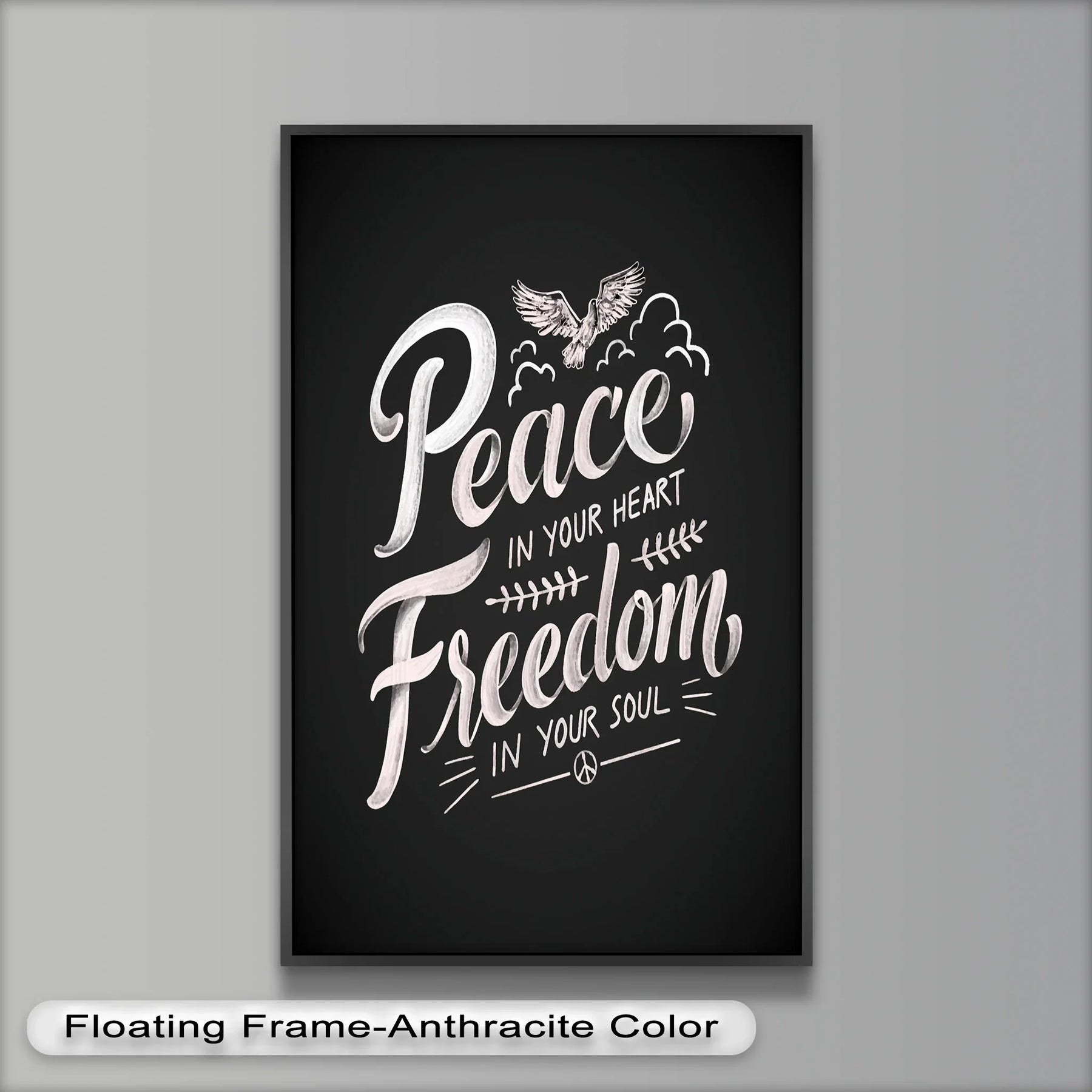 Embrace calm and elevate your spirit with Peace and Freedom, a graceful oil painting that combines flowing typography, soft pastel tones, and symbolic imagery. Featuring a soaring dove above the words “Peace in your heart, Freedom in your soul”, this artwork radiates positivity and emotional clarity.