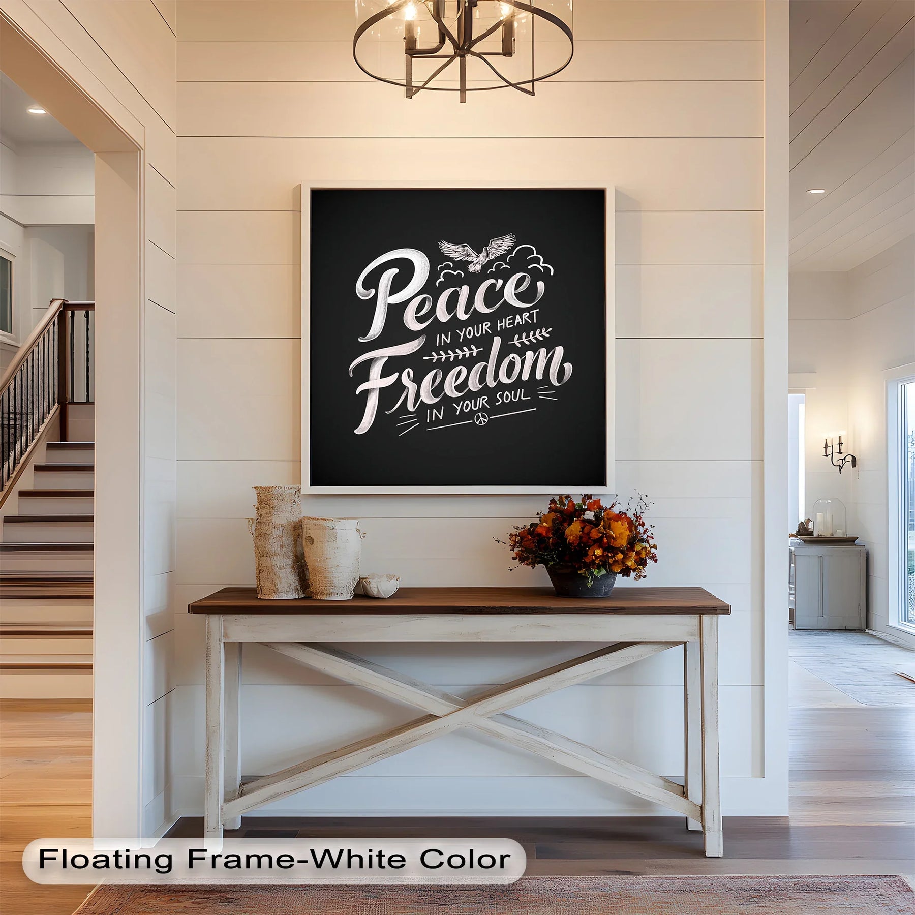 Peace and Freedom Oil Painting – Chalk-Inspired Motivational Wall Art