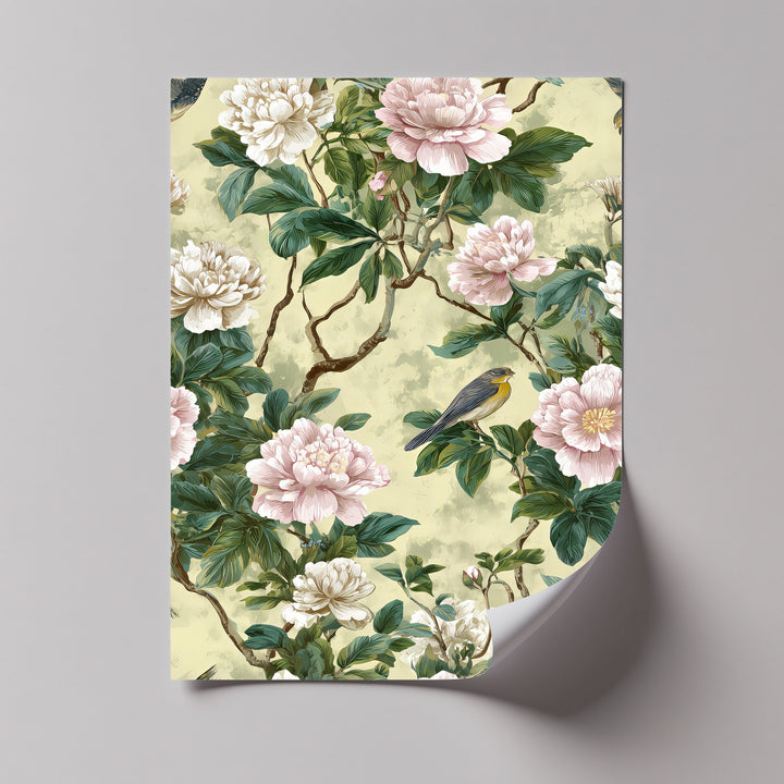 Embrace timeless elegance with Blooming Grace, a refined canvas wall art featuring delicate pink and white peonies in full bloom, set against lush green leaves and subtle beige tones. A graceful bird perched among the blossoms adds a touch of serenity and life, making this piece a perfect celebration of nature’s harmony.