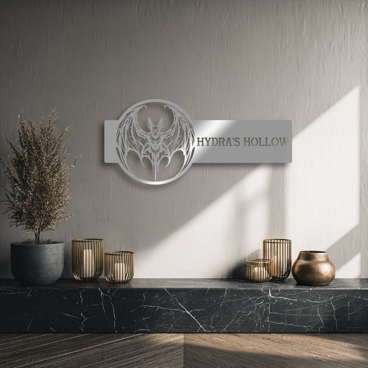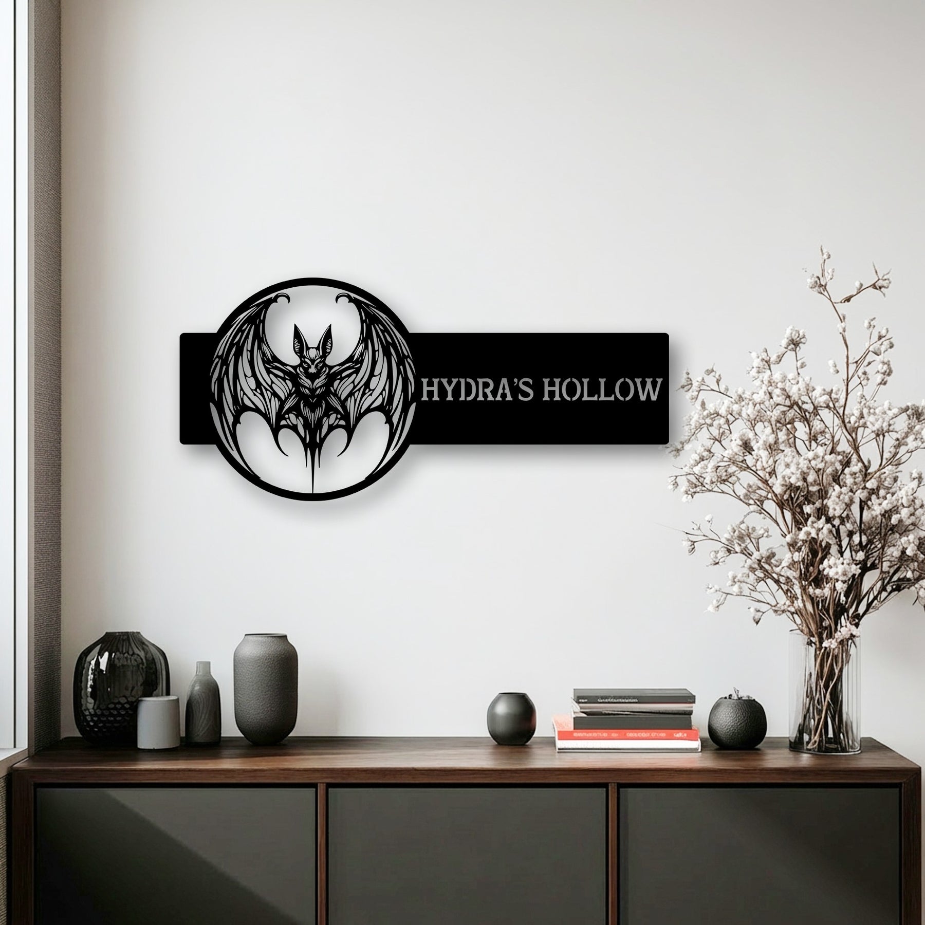Personalized Bat Metal Wall Art – Custom Gothic Name Sign