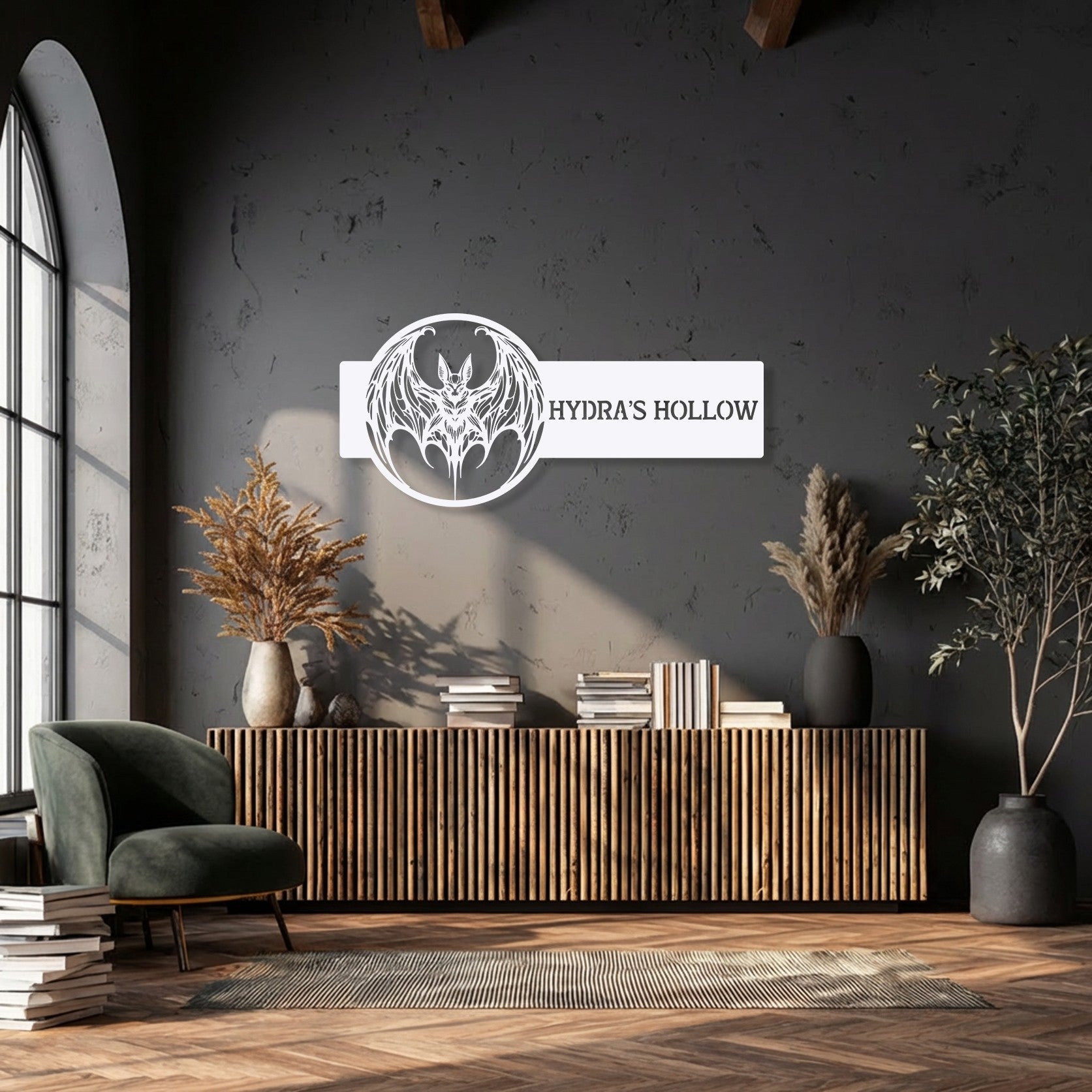 The extended nameplate allows you to showcase your custom text—like “Hydra’s Hollow”—making it a perfect personalized statement for your space. Whether used as a house name sign, gaming room decor, or a unique identity piece, it brings a strong and unforgettable presence to any wall.