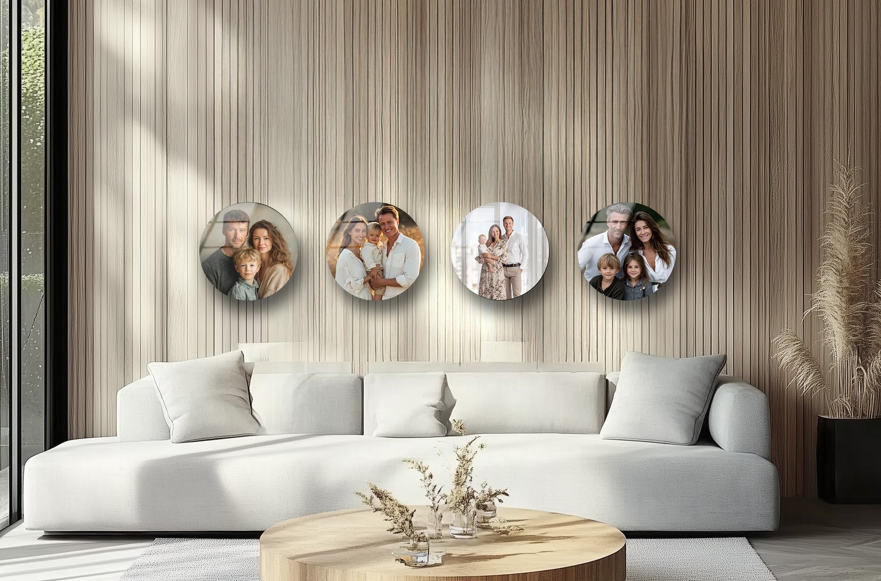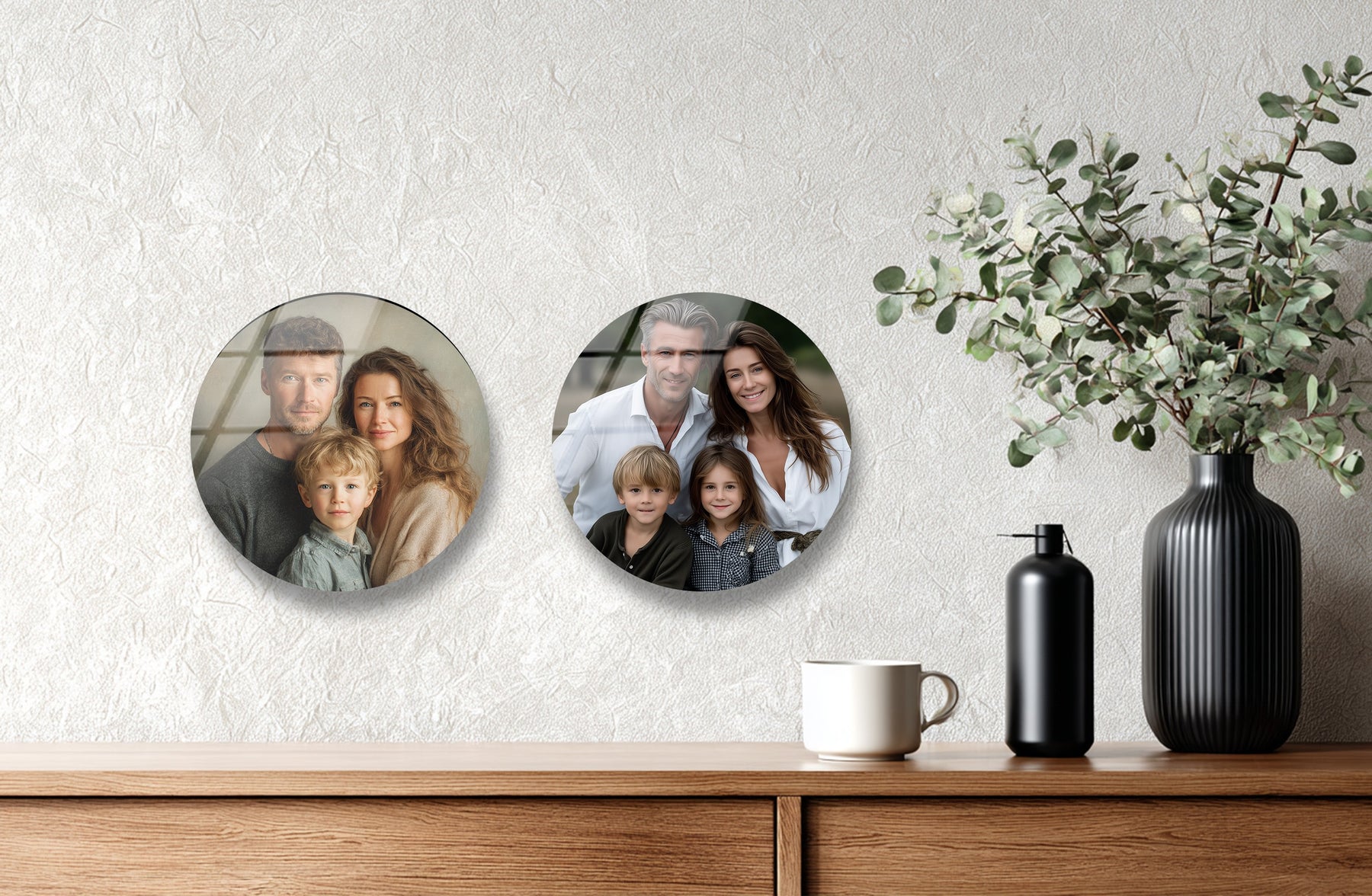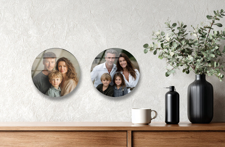 Personalized Family Photo Round Glass Wall Art Set – Custom Modern Design