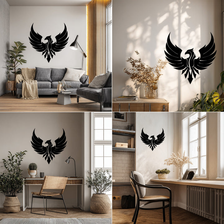 Ignite your walls with the power of rebirth and transformation through the Phoenix Metal Wall Art, a stunning symbol of resilience and eternal renewal. Designed with bold symmetry and sleek black metal, this artwork captures the mythical bird rising from its own flames — a masterpiece of strength and beauty.