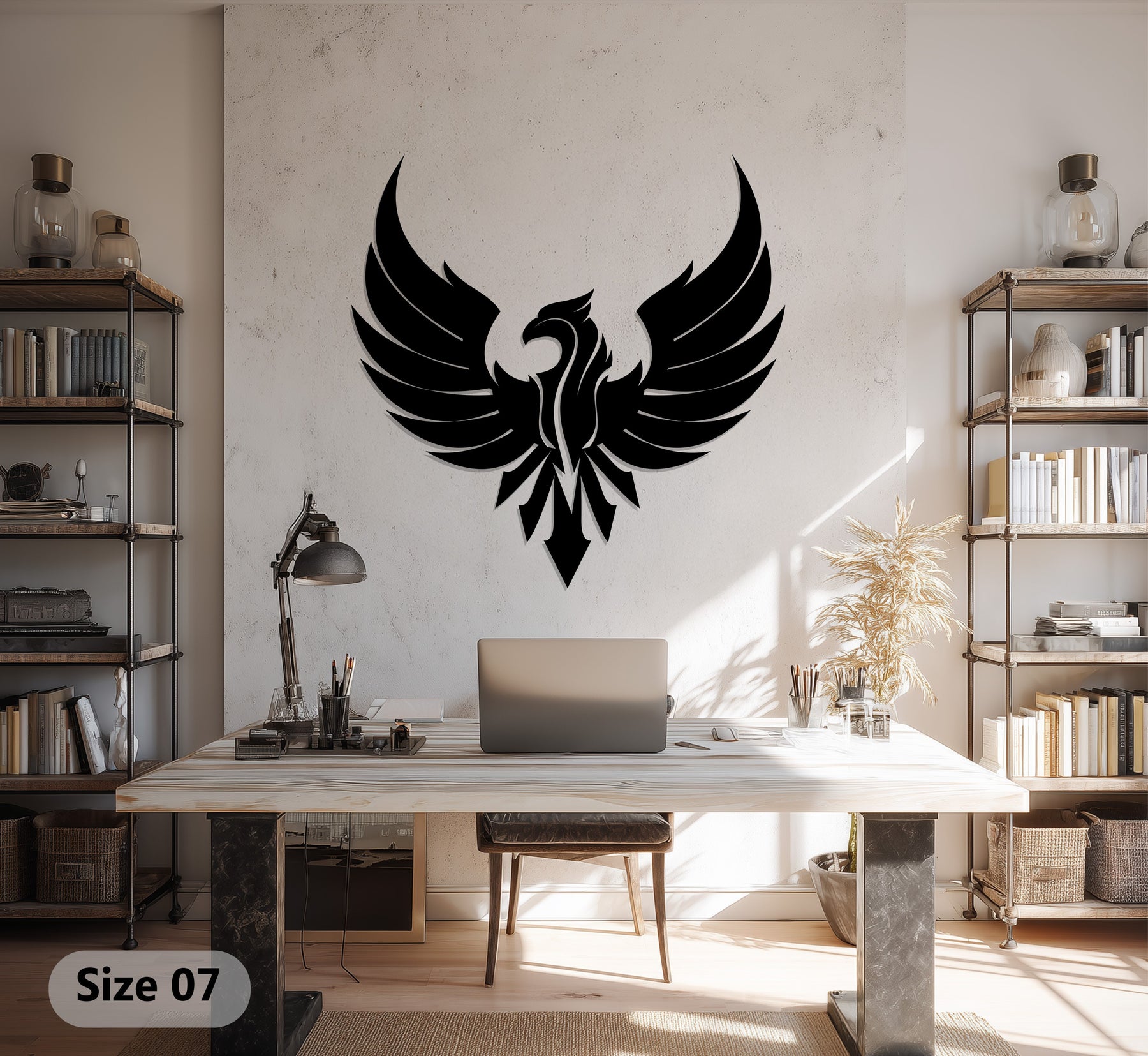 Perfect for living rooms, offices, or creative spaces, this piece brings motivation, mystery, and elegance to your interior. The wings spread wide, representing courage and victory over challenges, while the polished matte finish adds modern sophistication to your décor.