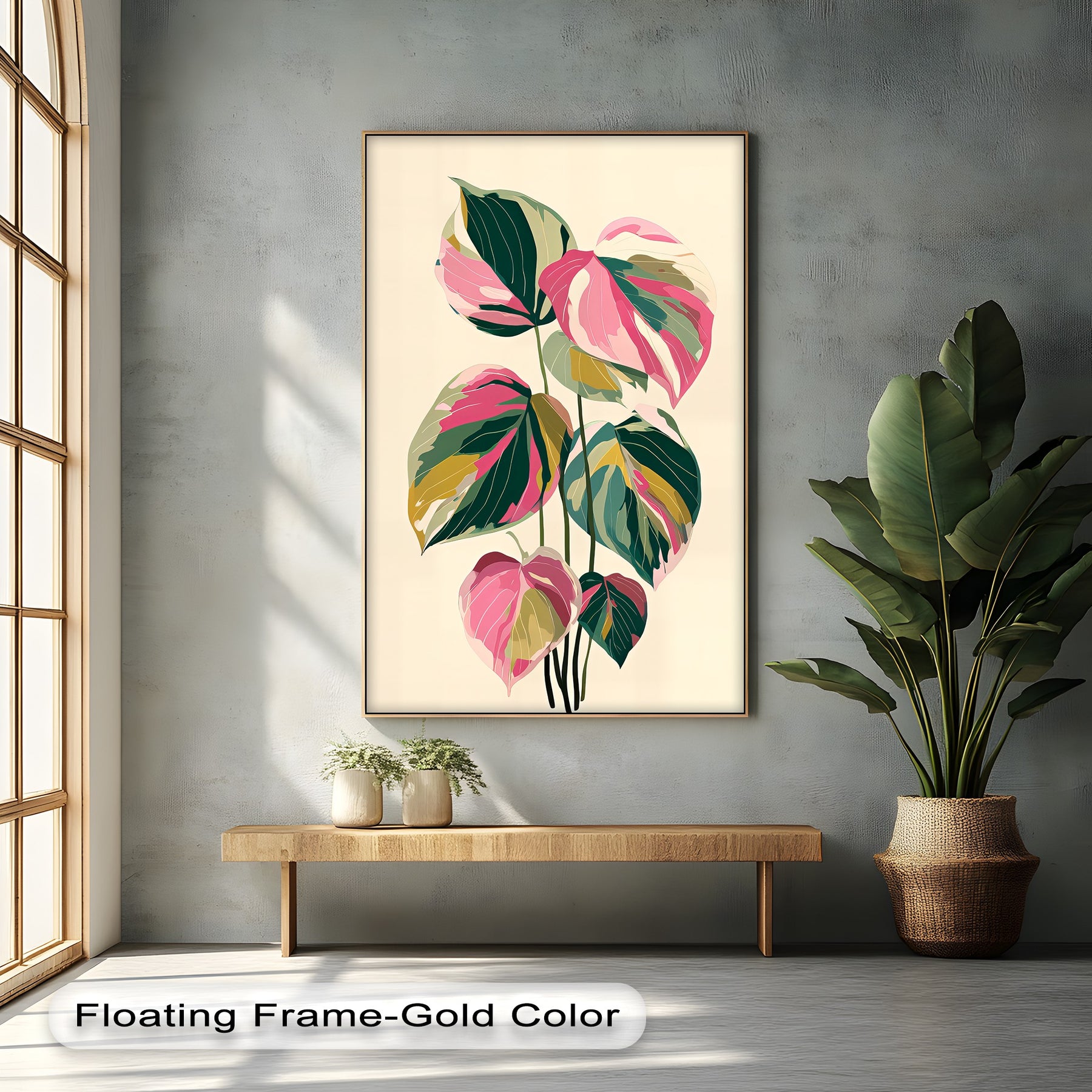 Brighten your home with Tropical Elegance, a bold canvas wall art featuring lush tropical leaves in vivid shades of pink, green, and gold. The contemporary color palette brings freshness and energy to any interior, making it the perfect choice for modern spaces seeking a touch of nature’s vibrancy.