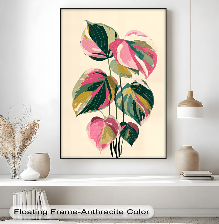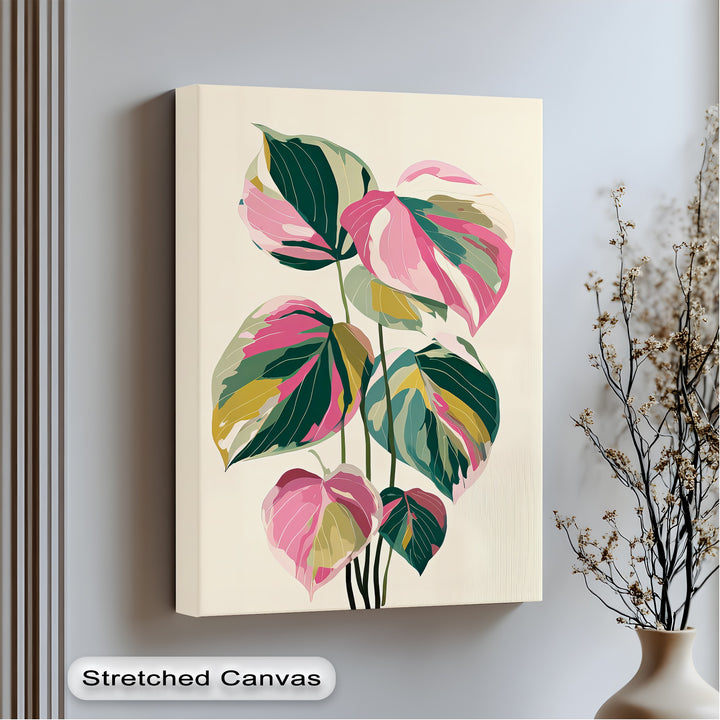 Pink and Green Leaves - Canvas Wall Art | Oversized Wall Art