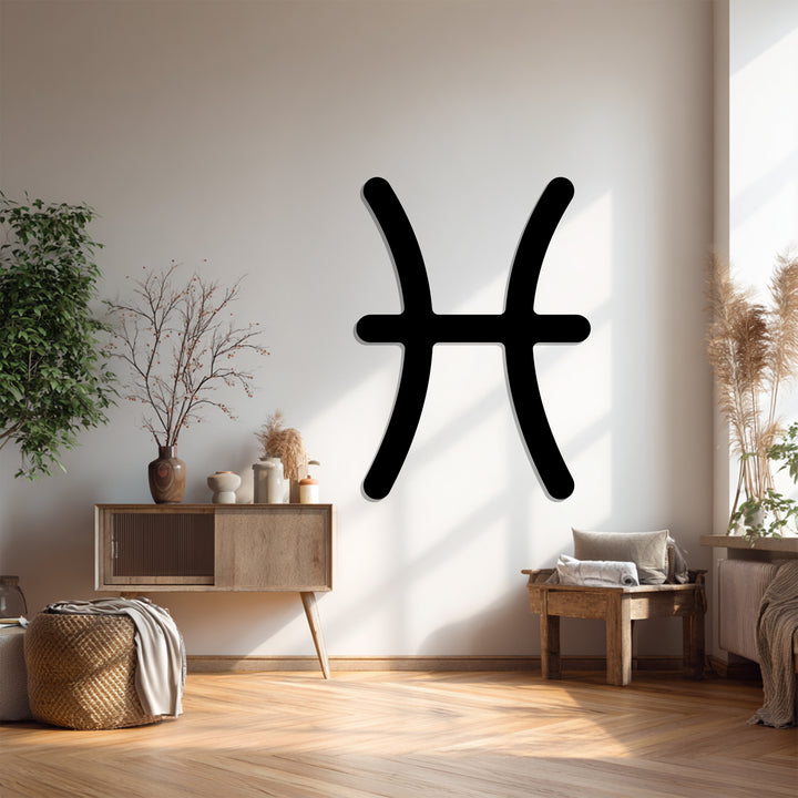 Embrace intuition and creativity with this Pisces Zodiac Symbol Metal Wall Art. Featuring the iconic two fish glyph, this artwork reflects the compassionate, imaginative, and deeply emotional traits of Pisces. Its elegant black metal design makes it a striking decorative piece for modern homes.