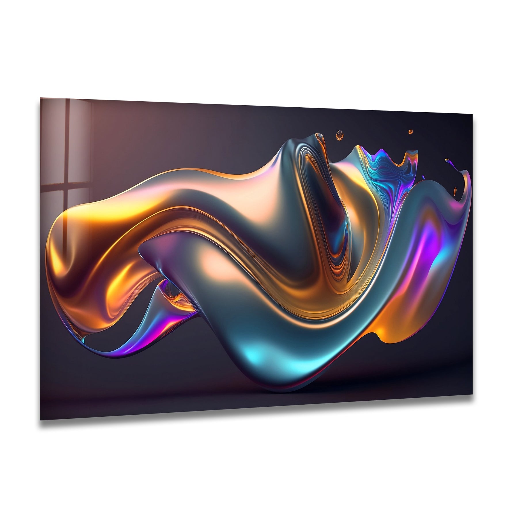 Printed on ultra-gloss premium glass, every curve, glow, and radiant color transition appears crystal-sharp. Whether displayed in living rooms, offices, gaming setups, creative studios, or luxury commercial interiors, this piece becomes a mesmerizing focal point—dynamic, colorful, and unmistakably contemporary.