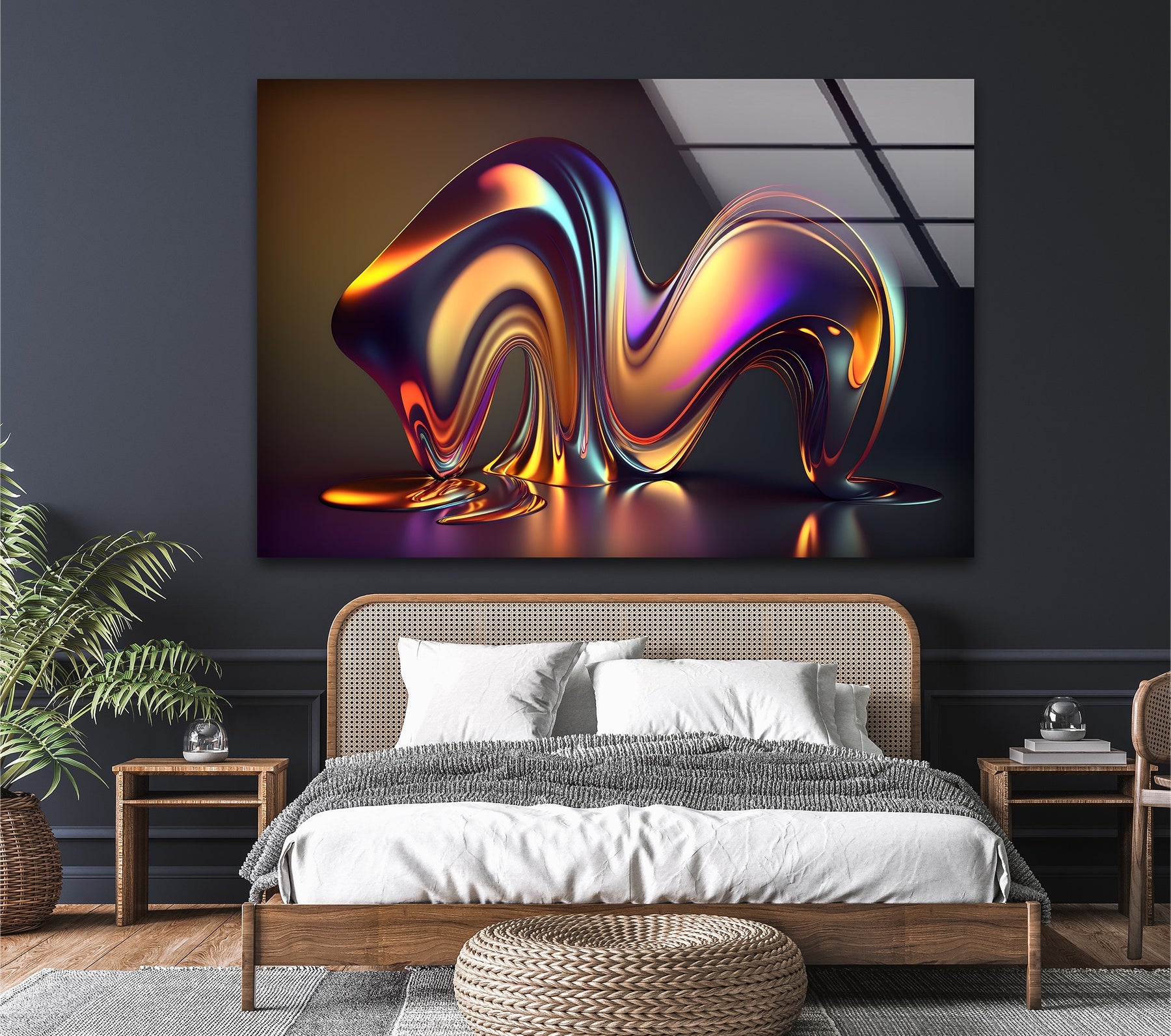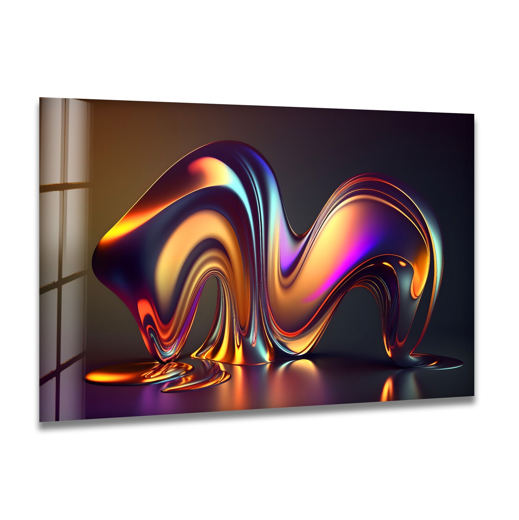 Printed on ultra-gloss premium glass, every reflective curve, color shift, and molten highlight appears exceptionally sharp and luminous. Perfect for living rooms, gaming rooms, creative studios, offices, and upscale commercial interiors, this artwork becomes a magnetic centerpiece—colorful, futuristic, and visually unforgettable.