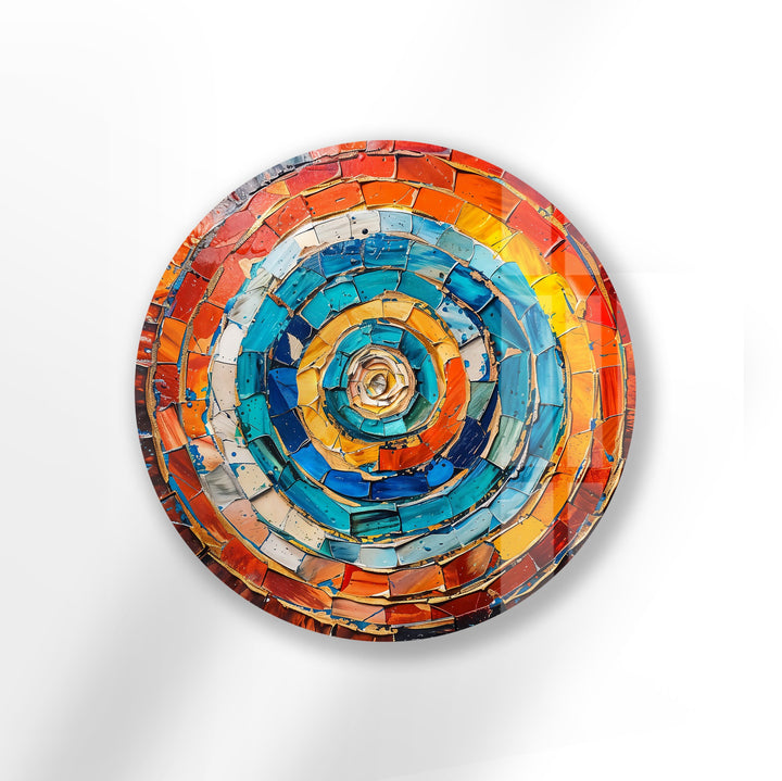 Radiant Vortex – Abstract Circular Mosaic Round Glass Wall Art