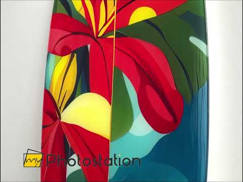 Crafted with high-quality tempered glass, the Red Flowers Surfboard floral wall art offers a glossy finish that highlights its intricate details and rich colors. It’s a durable and sophisticated choice for any wall.