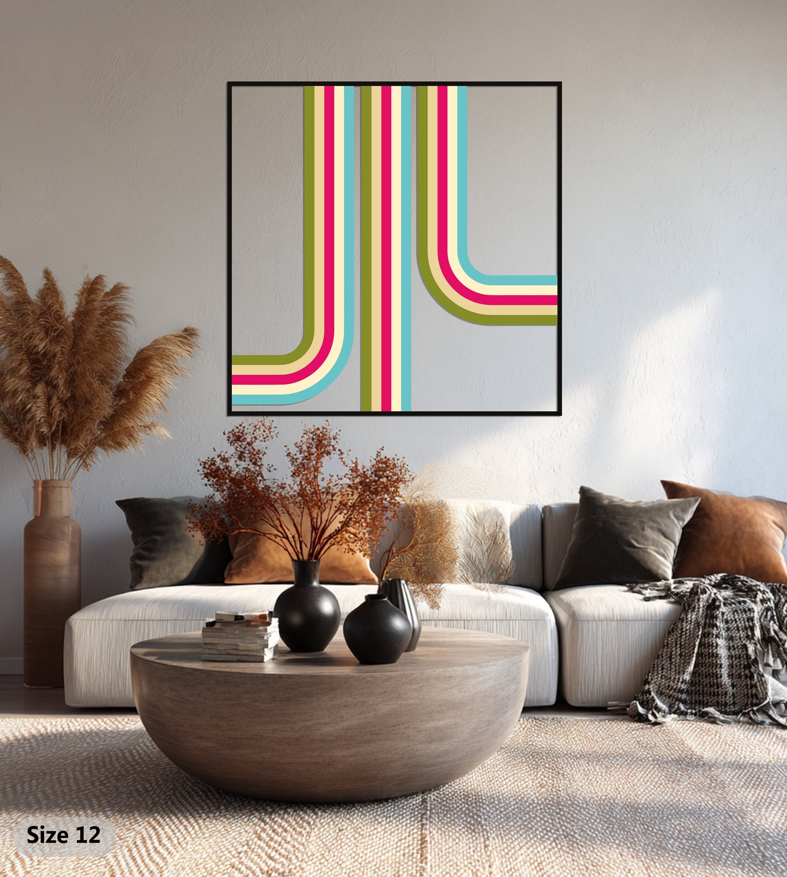Bring vintage charm and modern flair together with the Retro Lines Metal Wall Art, a stunning blend of geometric precision and nostalgic design. Featuring bold, curving stripes in green, teal, cream, pink, and mustard, this artwork adds a rhythmic flow and playful energy to living rooms, offices, or contemporary interiors.