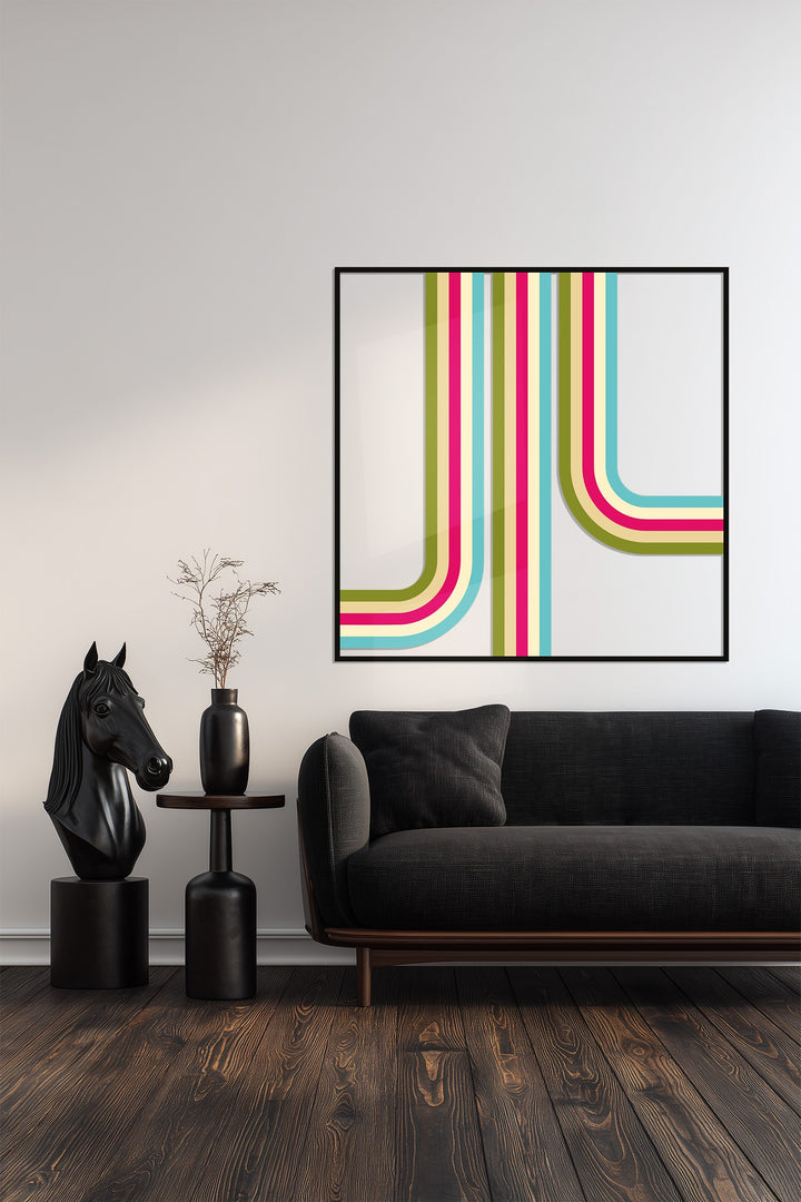 Retro Lines Metal Wall Art – Colorful Geometric Modern Home Decor