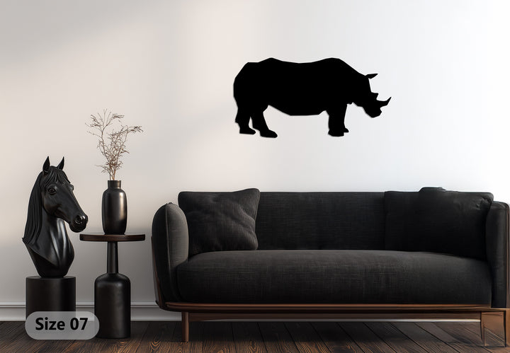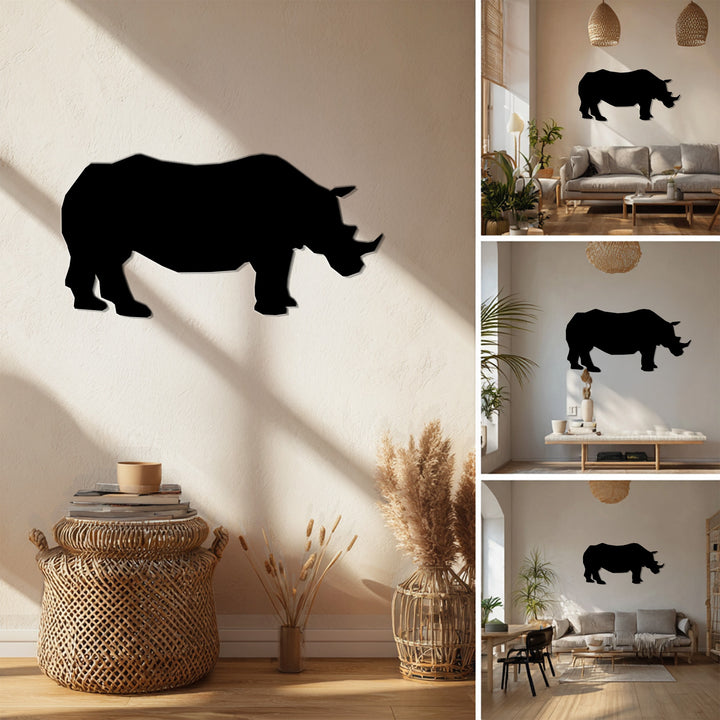 Perfect for wildlife enthusiasts and those who love strong symbolic décor, the rhino represents courage, protection, and endurance. Crafted from durable metal, it is lightweight, easy to mount, and built to last, making it an ideal choice for adding a touch of the wild to your space.