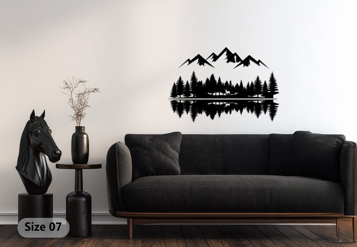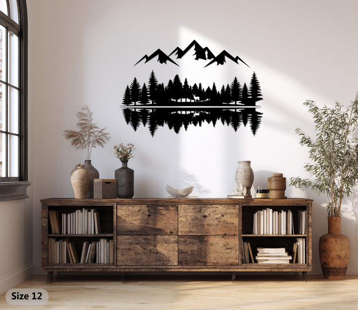 Rustic Mountain Forest Metal Wall Art – Nature Reflection Decor
