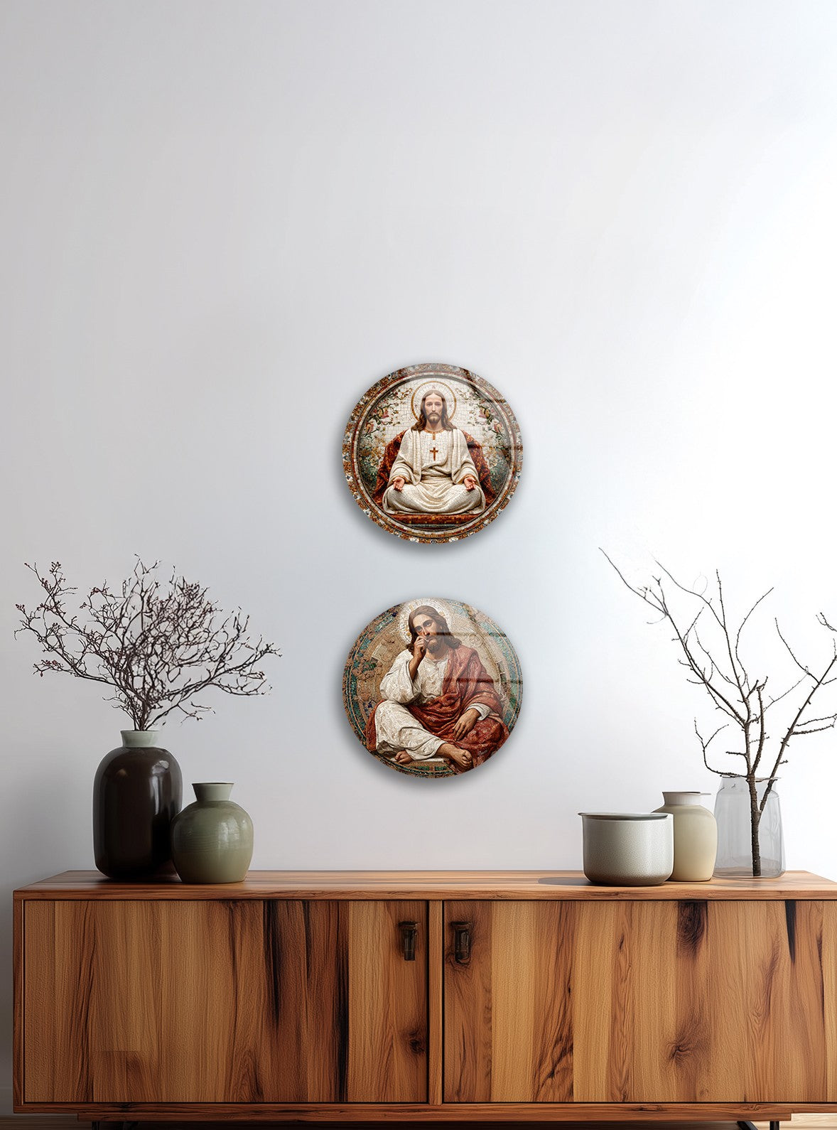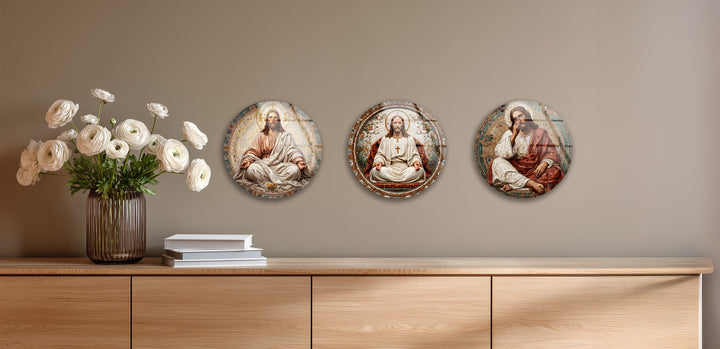 Sacred Grace Collection – Jesus Christ Mosaic Round Glass Wall Art Set