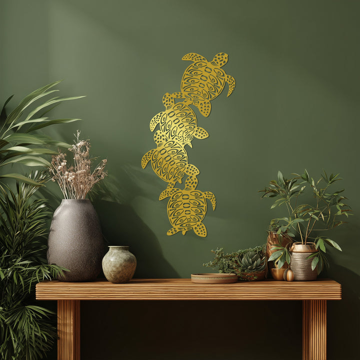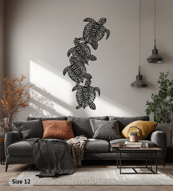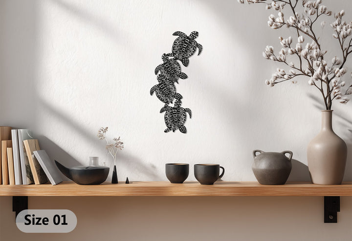 Bring the serenity of the ocean into your home with this Sea Turtle Metal Wall Art, a beautifully detailed piece featuring four swimming turtles in a tribal-inspired design. Crafted in sleek black metal, this wall décor captures the spirit of marine life, symbolizing peace, longevity, and harmony.