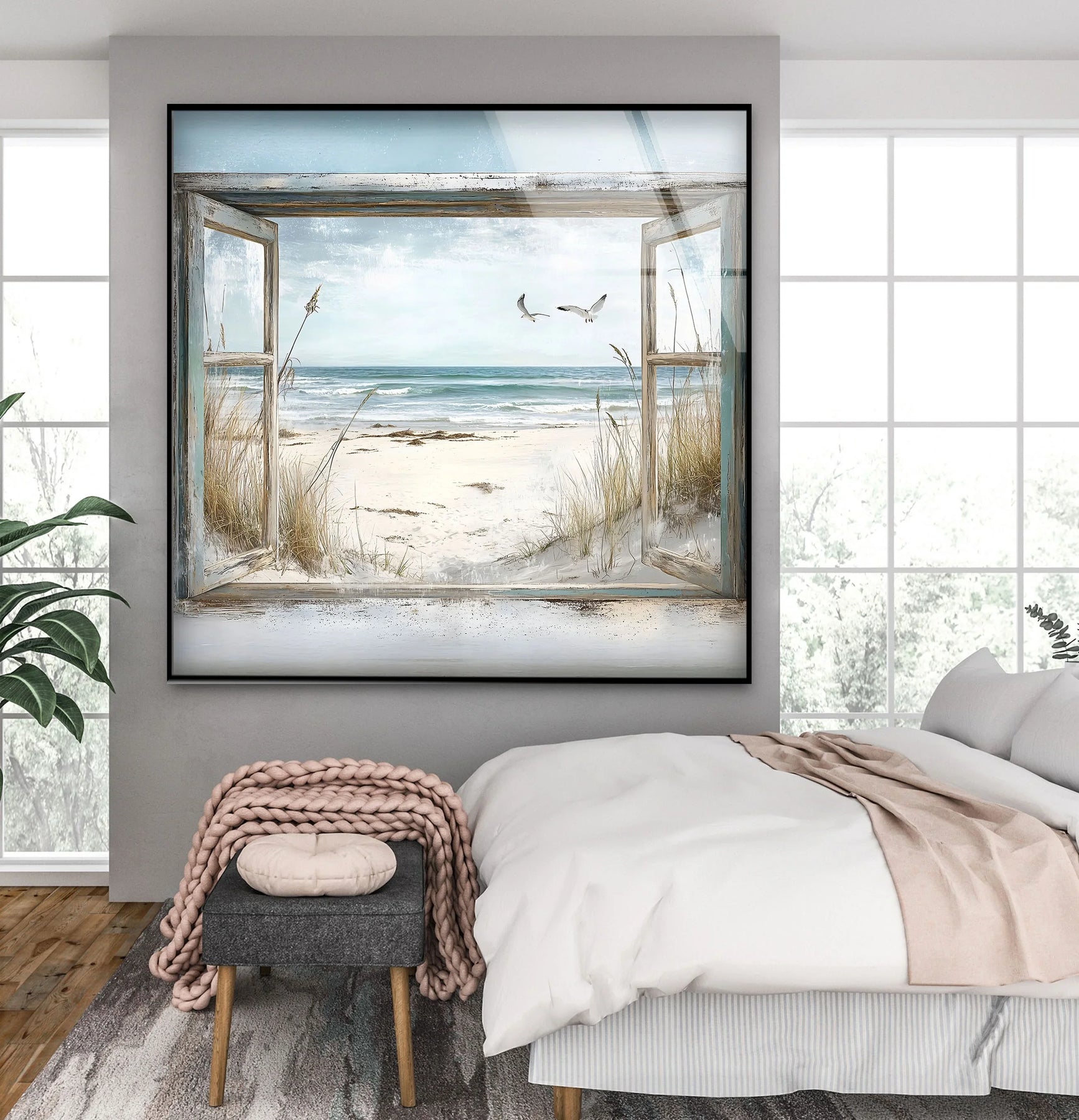 Seaside Freedom – Vintage Window View Glass Wall Art