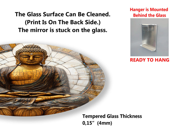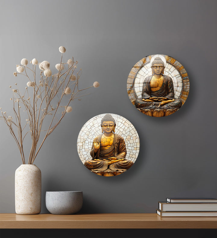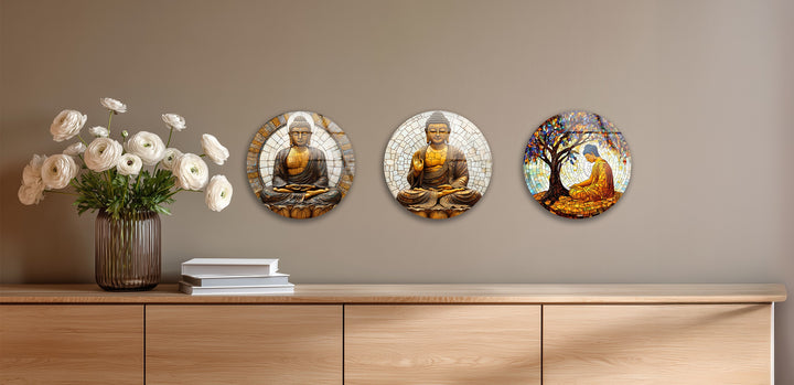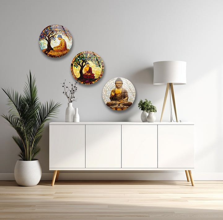 Serene Enlightenment Set – Buddha Mosaic Round Glass Wall Art Collection