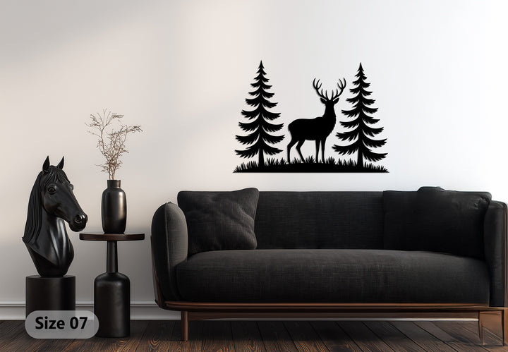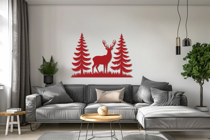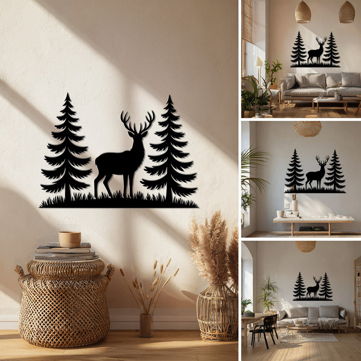 Experience the calm beauty of the wild with the Serene Forest Deer Metal Wall Art. This elegant design features a majestic deer standing gracefully between tall pine trees — a timeless symbol of peace, strength, and harmony with nature.