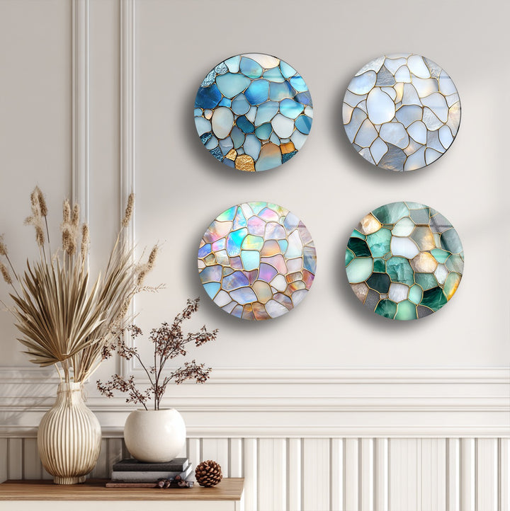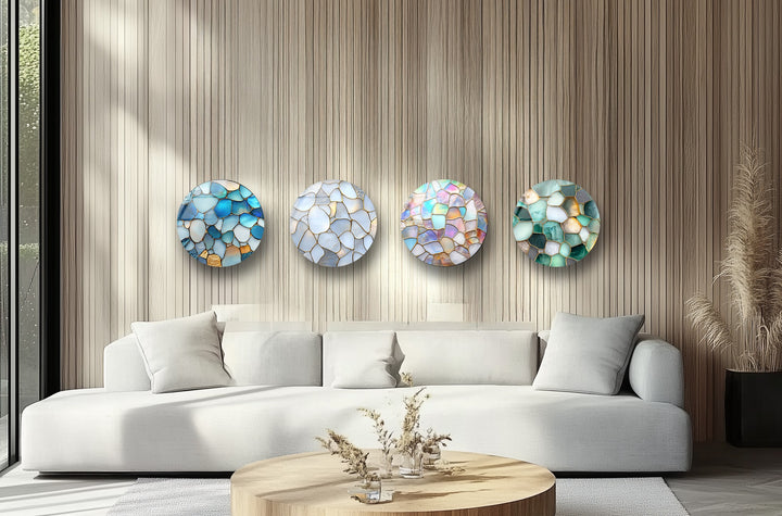Serene Glow – Ocean Pebble Mosaic Round Glass Wall Art Set