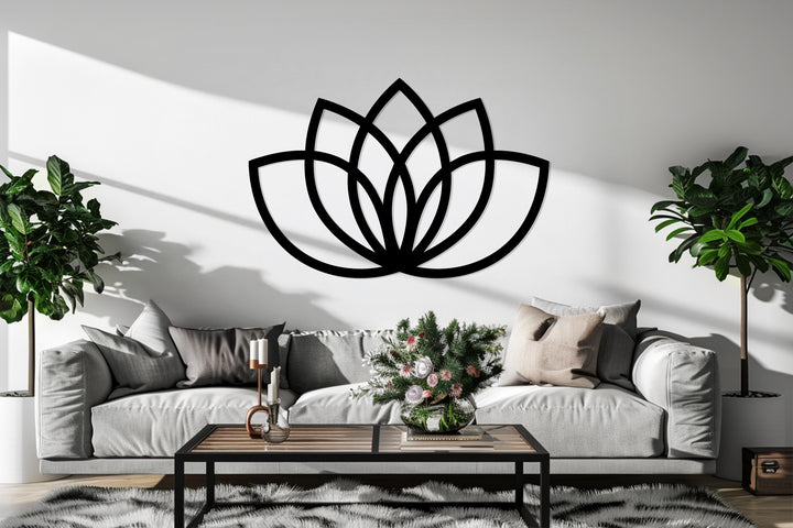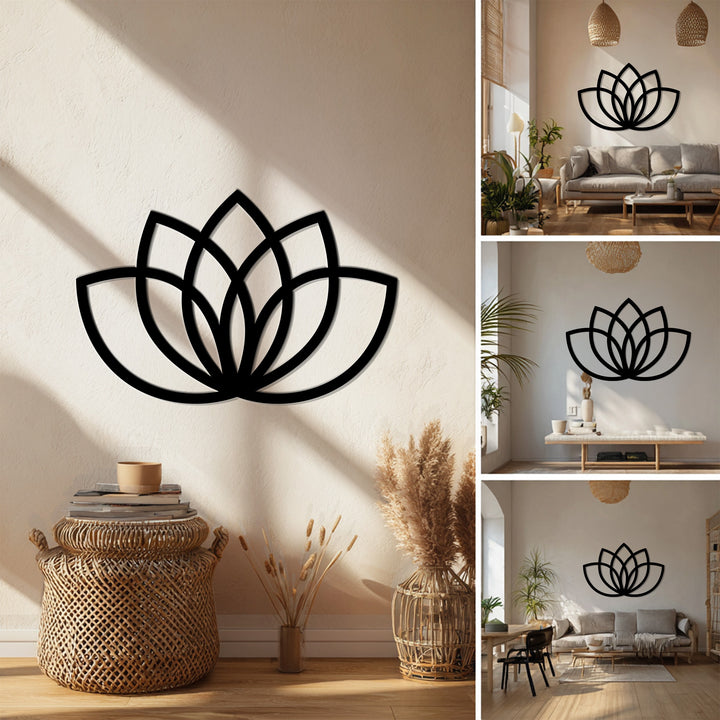 Crafted from premium black metal with precision laser cutting, the lotus silhouette offers a striking contrast against any wall color. Its minimalist structure captures the elegance of simplicity, symbolizing growth and enlightenment — a timeless reminder of serenity in everyday life.