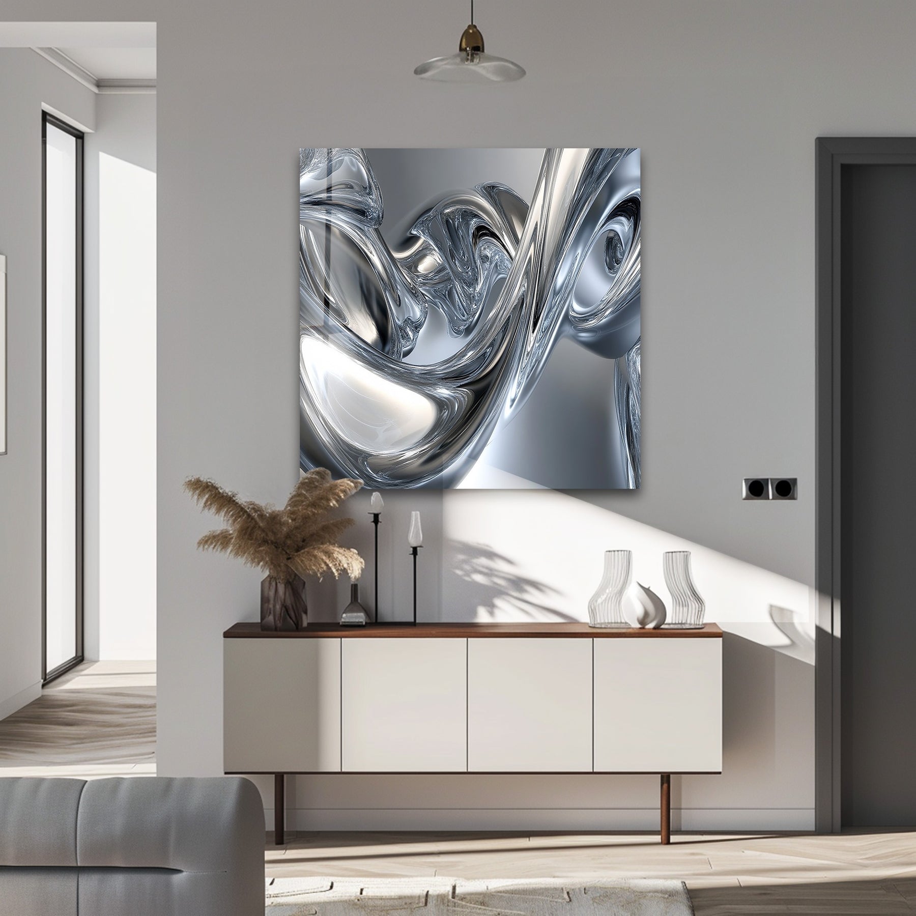 Printed on ultra-gloss premium glass, every curve, ripple, and mirrored detail appears razor-sharp and luminous. Ideal for living rooms, offices, bedrooms, hallways, or luxury commercial environments, this artwork transforms any wall into a sophisticated design statement—pure, metallic, and visually striking.