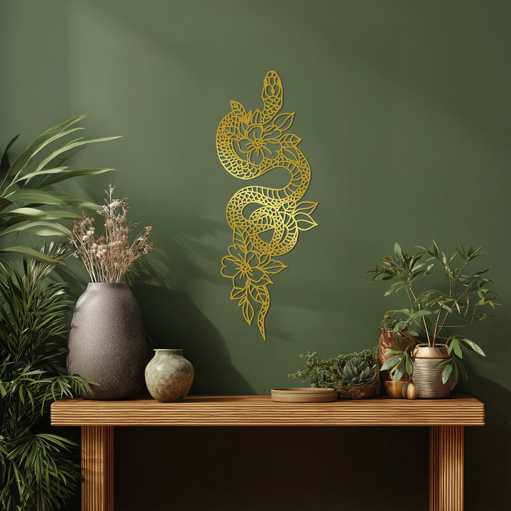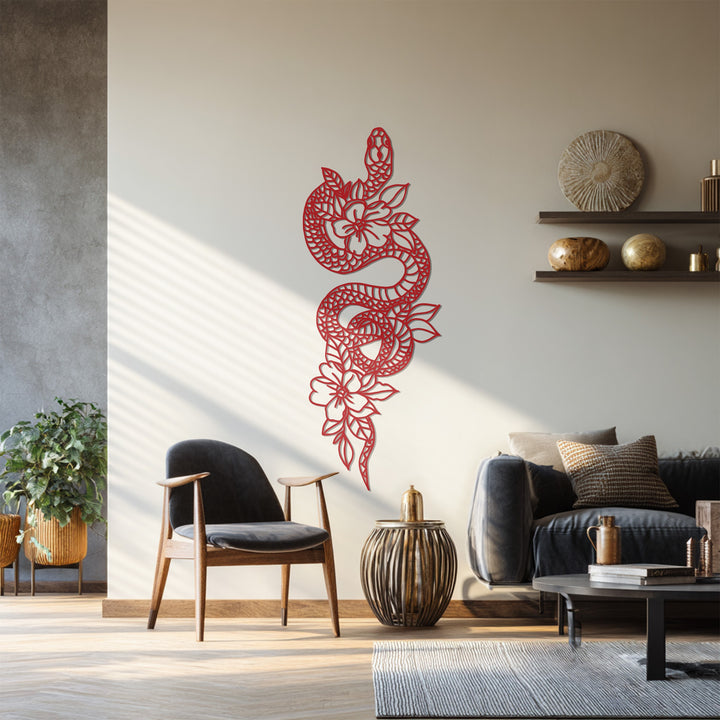 Snake & Floral Metal Wall Art – Nature Inspired Design