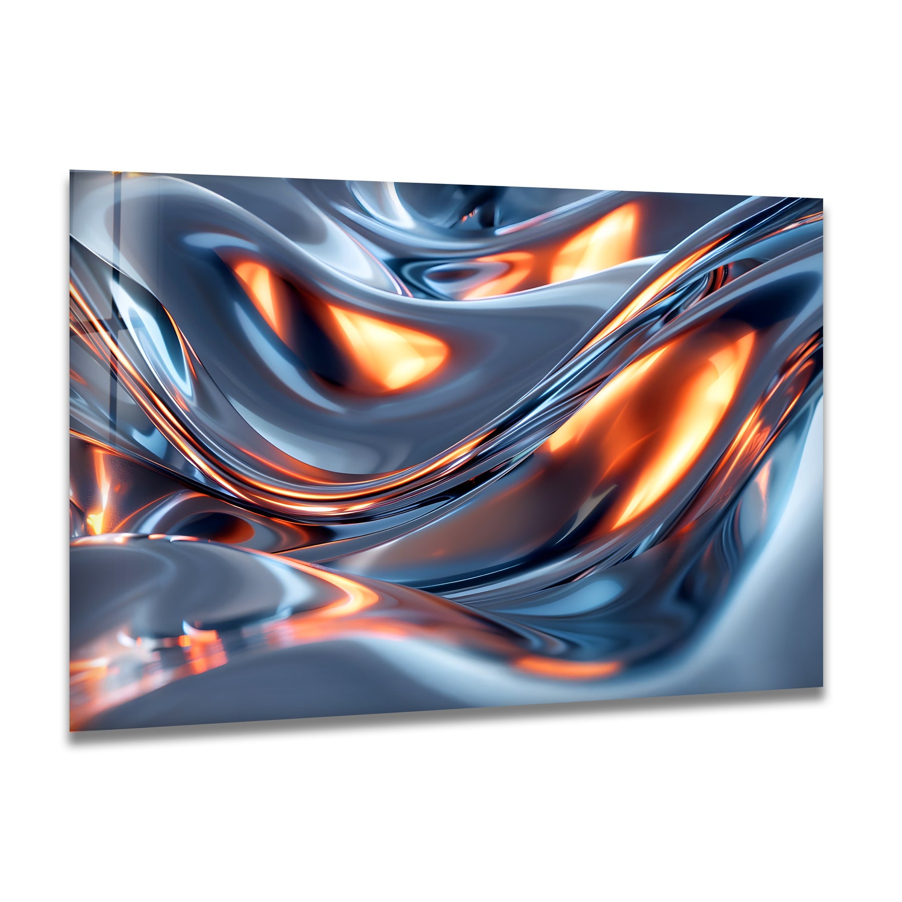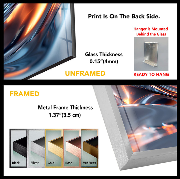 Printed on ultra-gloss premium glass, every reflection, gradient, and flowing contour appears brilliantly sharp. Ideal for living rooms, offices, gaming rooms, hallways, or upscale commercial environments, this artwork becomes a powerful visual centerpiece—dynamic, luminous, and refined.