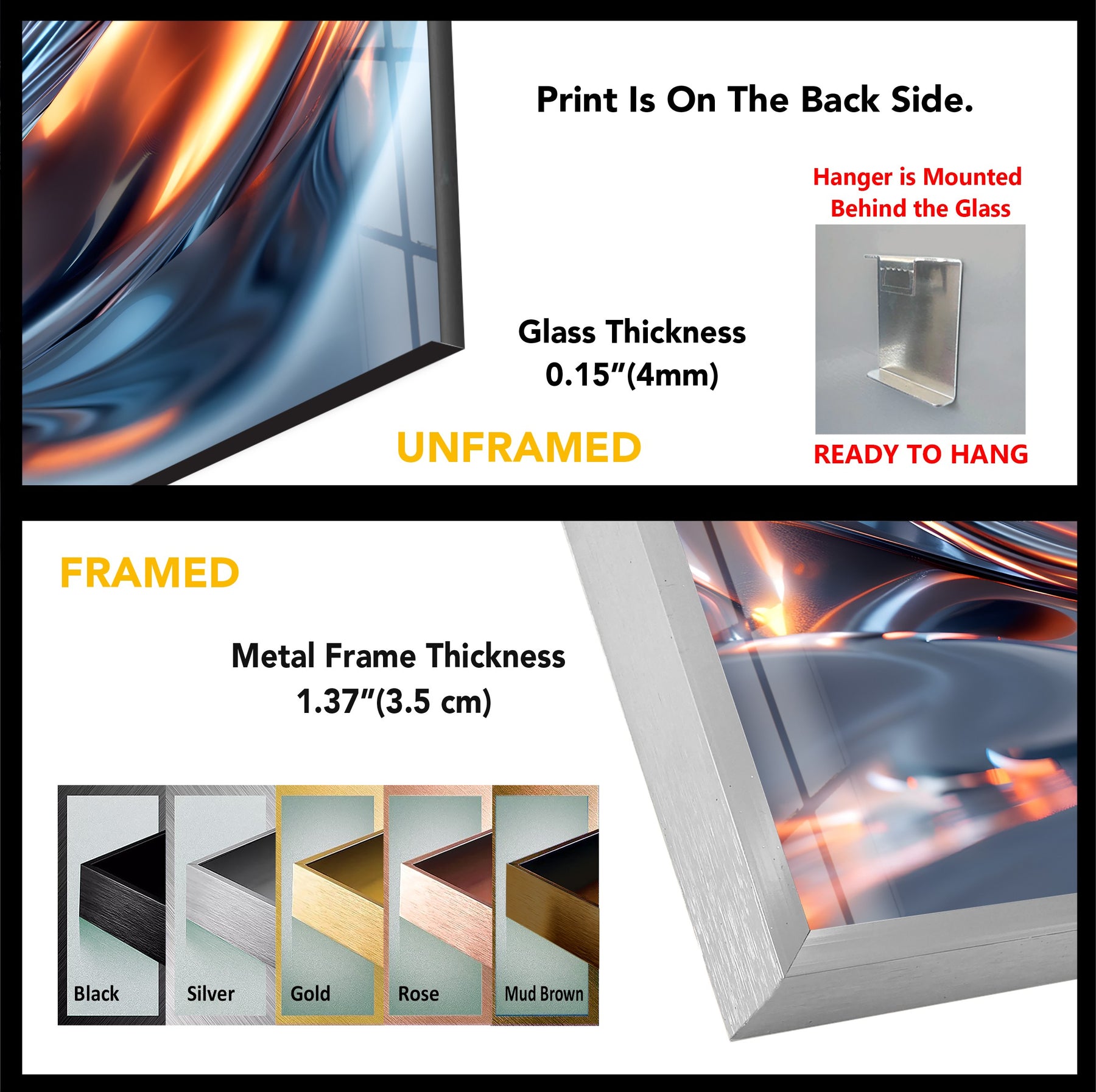Our glass wall art comes with a special metal hanger, securely mounted behind the glass for a sleek look. Delivered ready to hang, it ensures easy and comfortable installation for any customer.