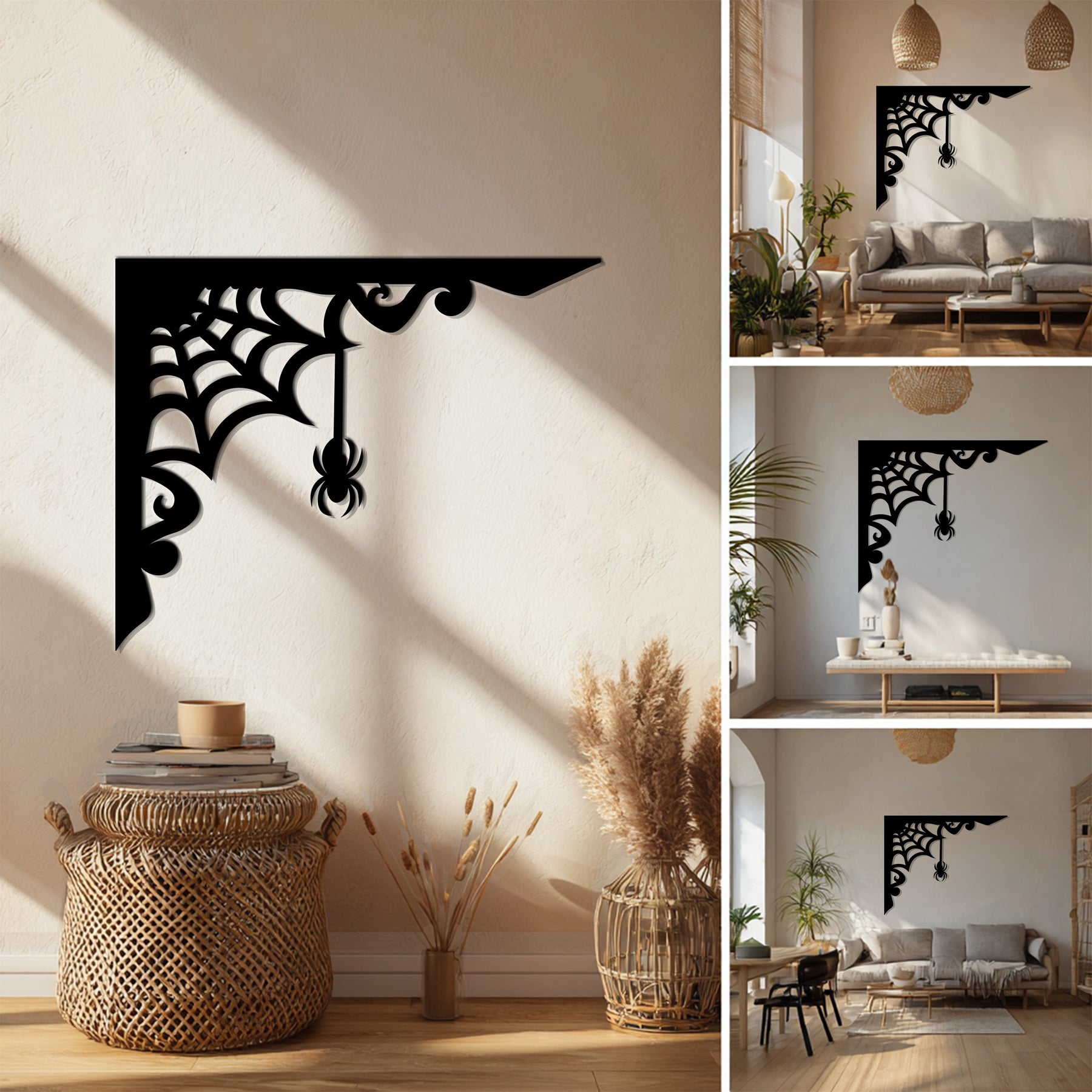 Spider web corner black metal wall art décor