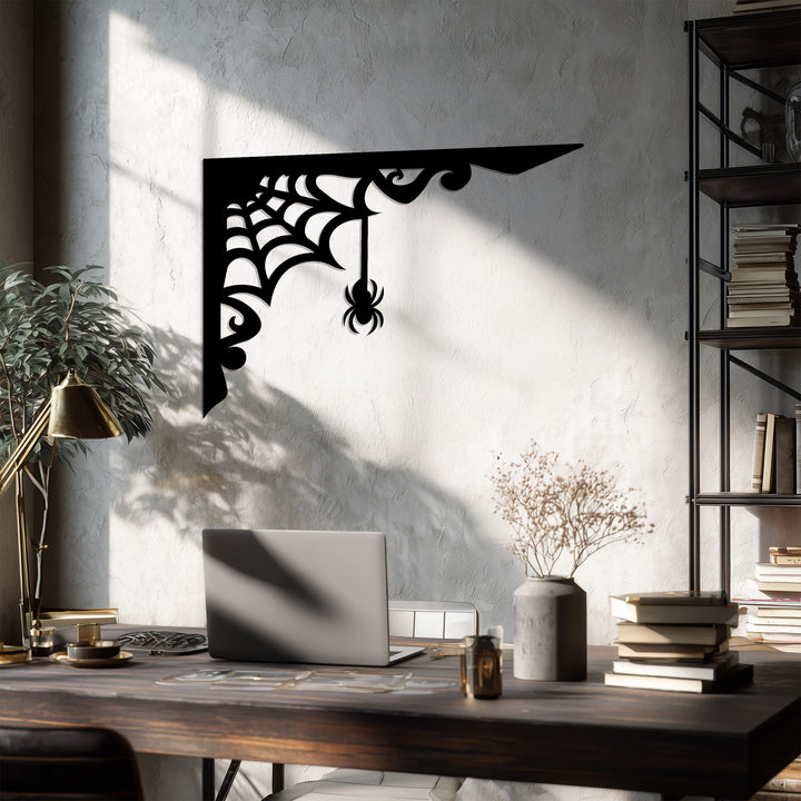Spider Web Corner – Gothic Spider Metal Wall Art