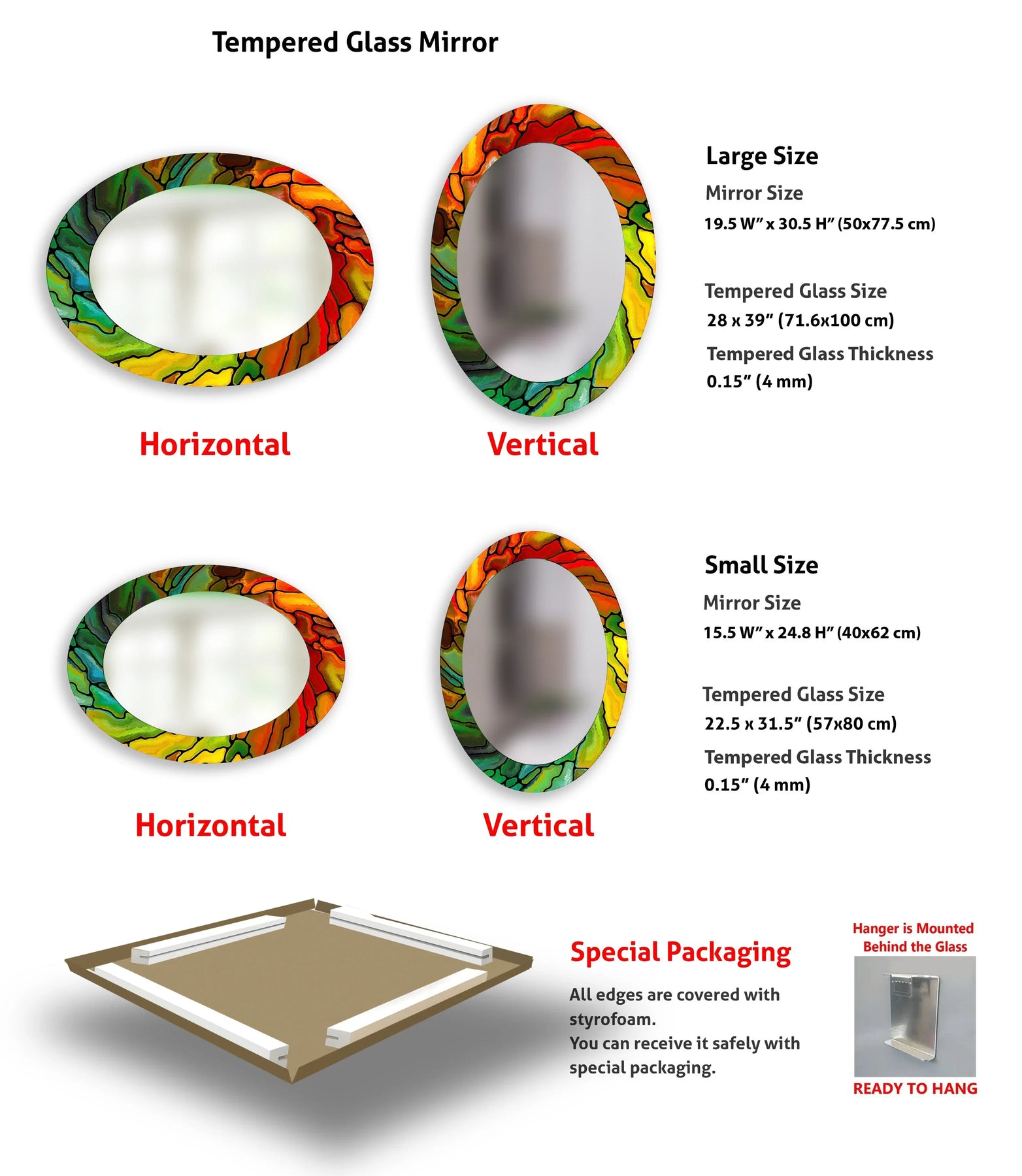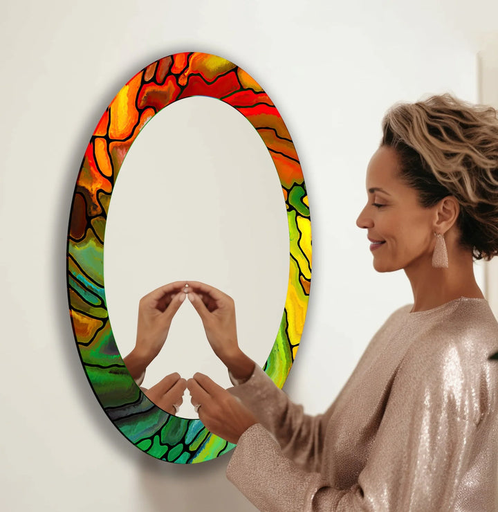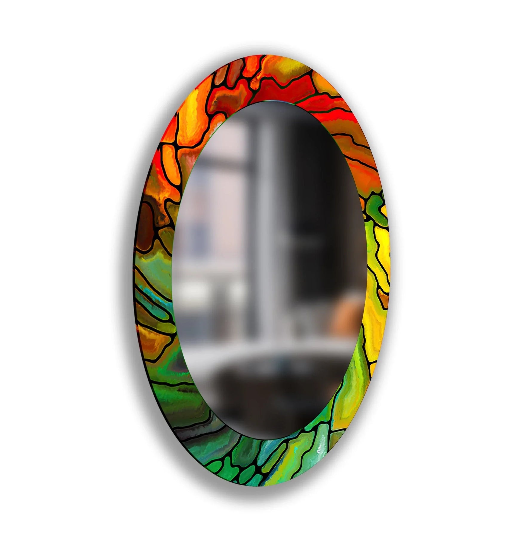 Transform your living room with the striking Stained Living Room Mirror. Featuring an oval design with a colorful stained glass effect in bold green, yellow, and red hues, this wall mirror exudes warmth and sophistication. Perfectly crafted to be both a functional mirror and a centerpiece for your home, it enhances any space with a pop of color and artistic flair.