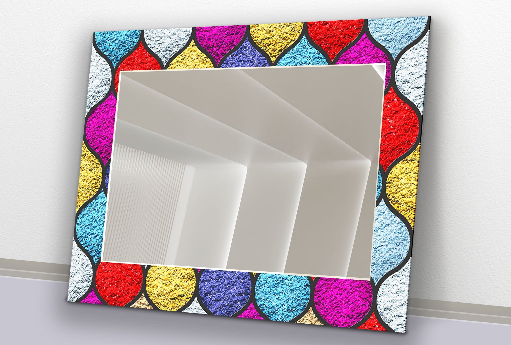 Crafted with high-quality UV printing on 4 mm tempered glass, this wall mirror delivers durability, clarity, and superior design. Whether used to enhance your bathroom or bring life to your entryway, this colorful stained wall mirror offers both function and flair.
