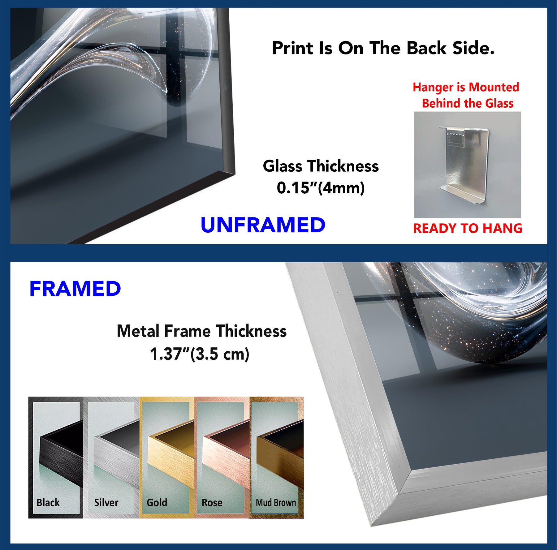 Printed on ultra-gloss premium glass, every highlight, reflection, and cosmic detail appears with extraordinary clarity. Ideal for living rooms, offices, studios, entertainment areas, or upscale commercial spaces, this artwork becomes an instant focal point—minimalist, otherworldly, and visually unforgettable.